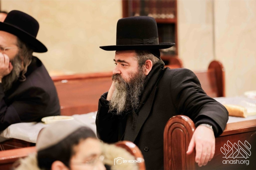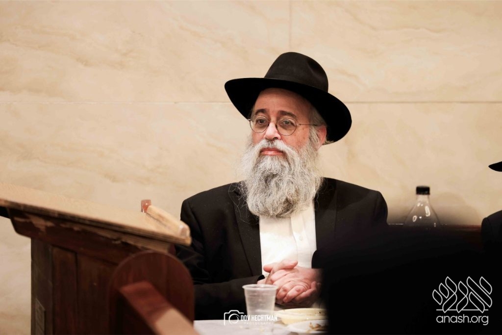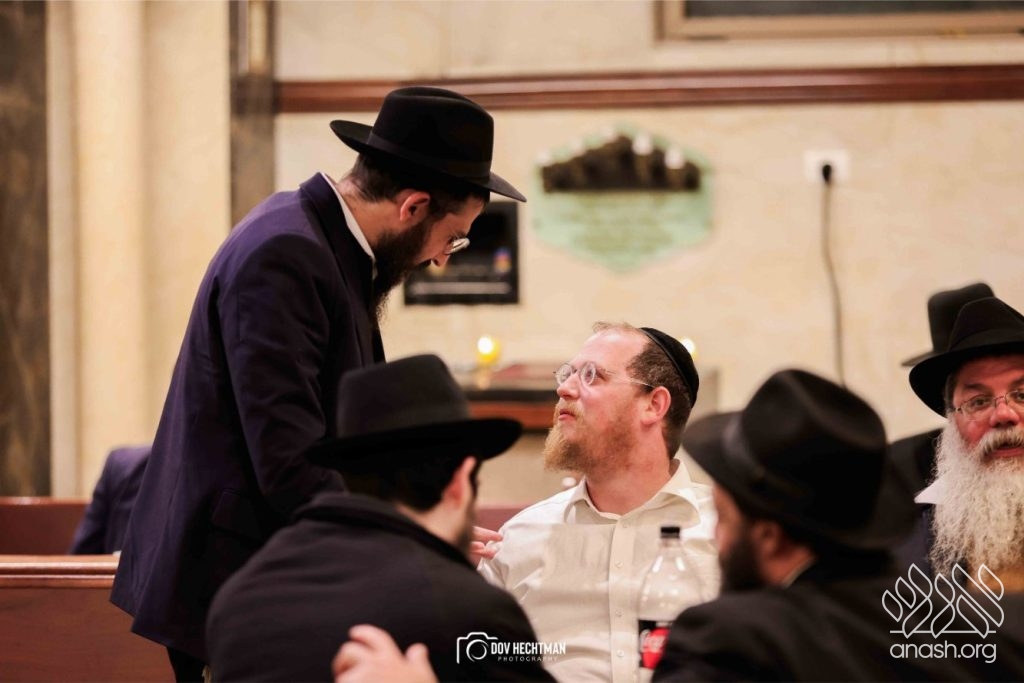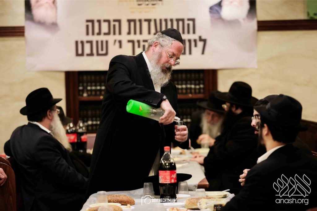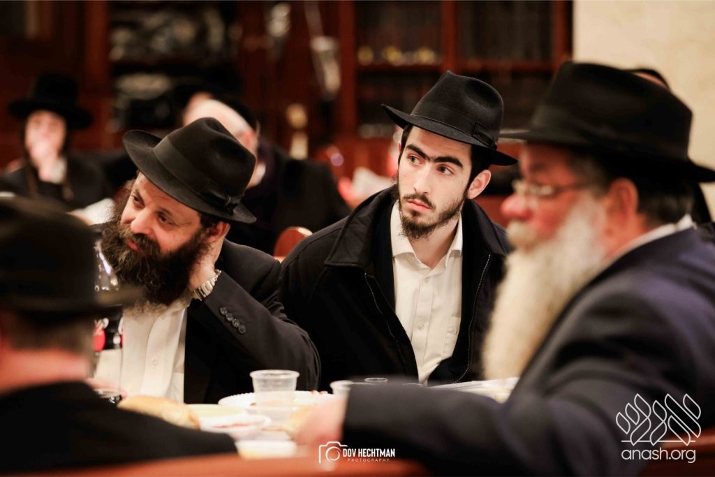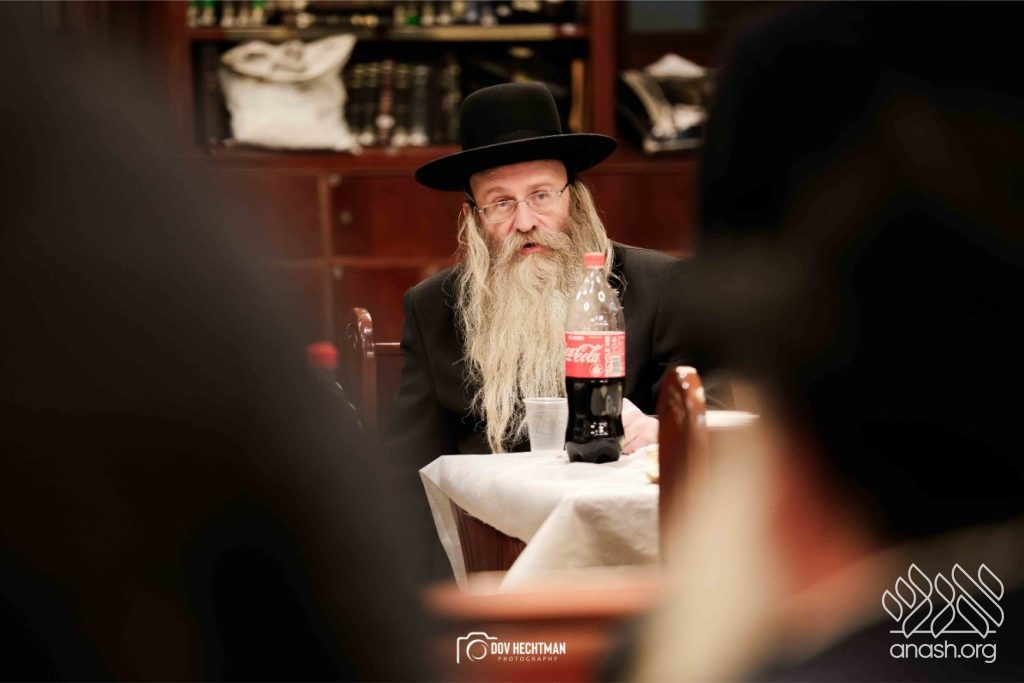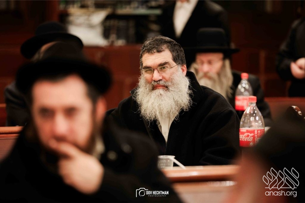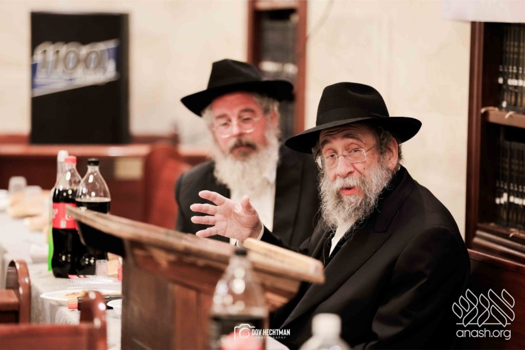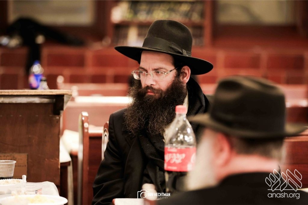The grand farbrengen took place in an uplifting atmosphere, with participants singing niggunim and engaging in heartfelt words of inspiration that continued late into the night.