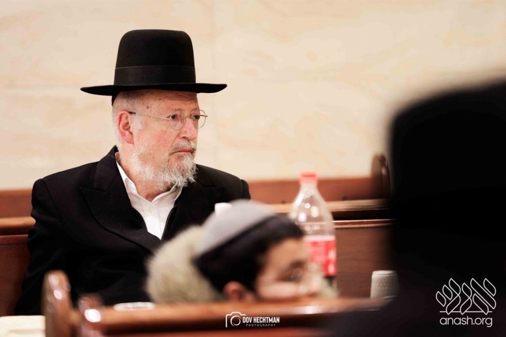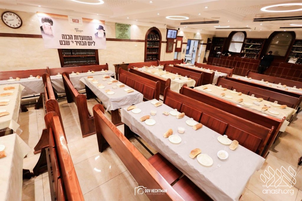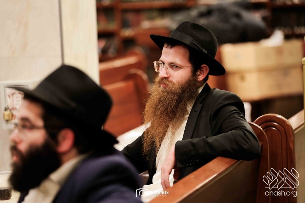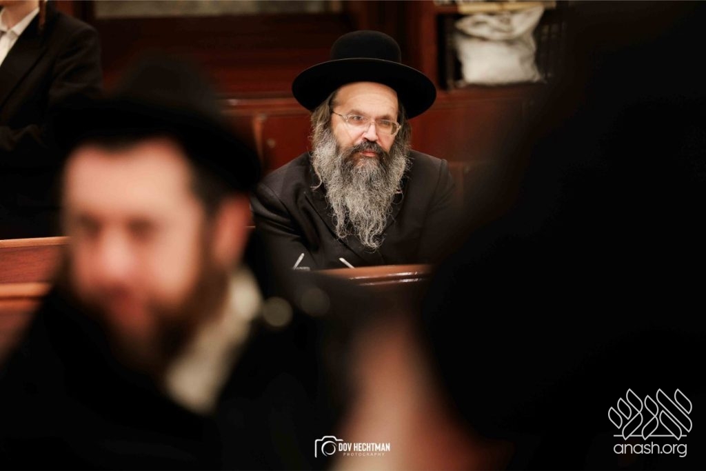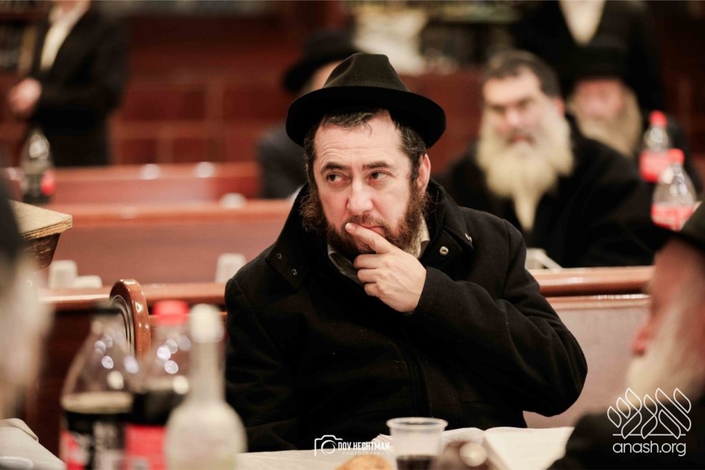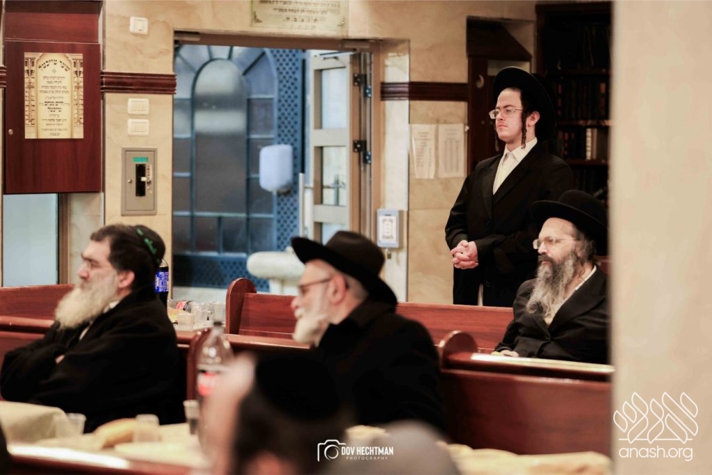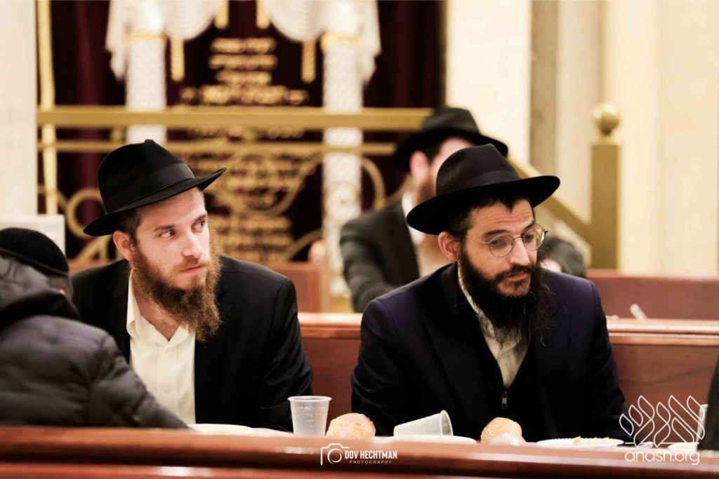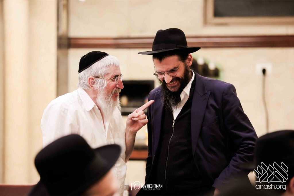 The grand farbrengen took place in an uplifting atmosphere, with participants singing niggunim and engaging in heartfelt words of inspiration that continued late into the night.