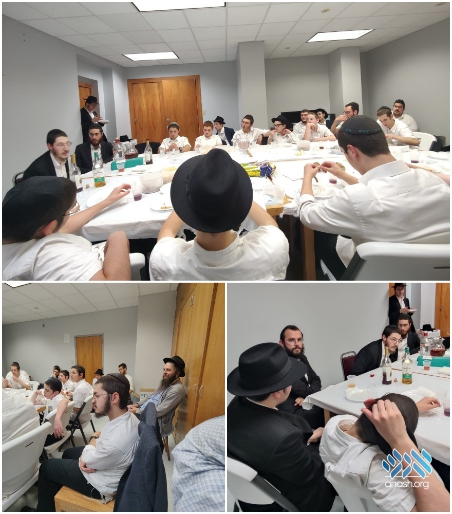 The farbrengen was led by mashpia Rabbi Menachem Mendel Sorkin and Rabbi Benzion Bluming, Dean and Menahel of the Yeshiva campus and mashpia of Shiur Beis.