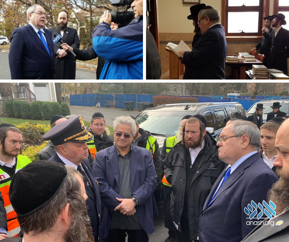 He was briefed by the Chief of Police and local authorities and also visited a nearby shul to daven Mincha.