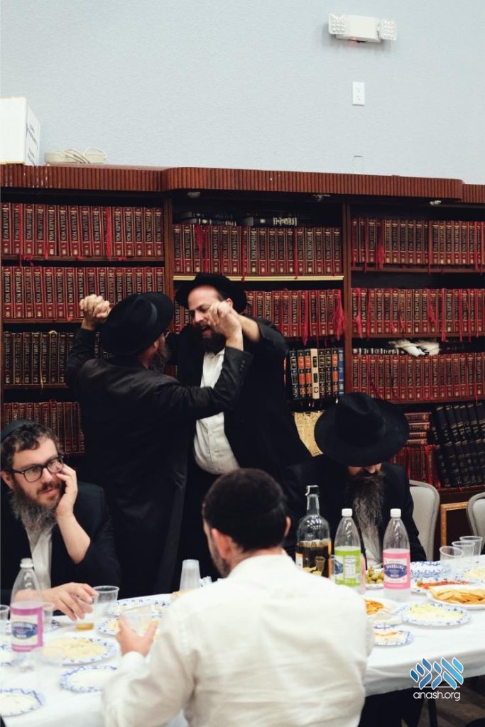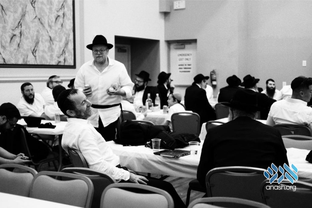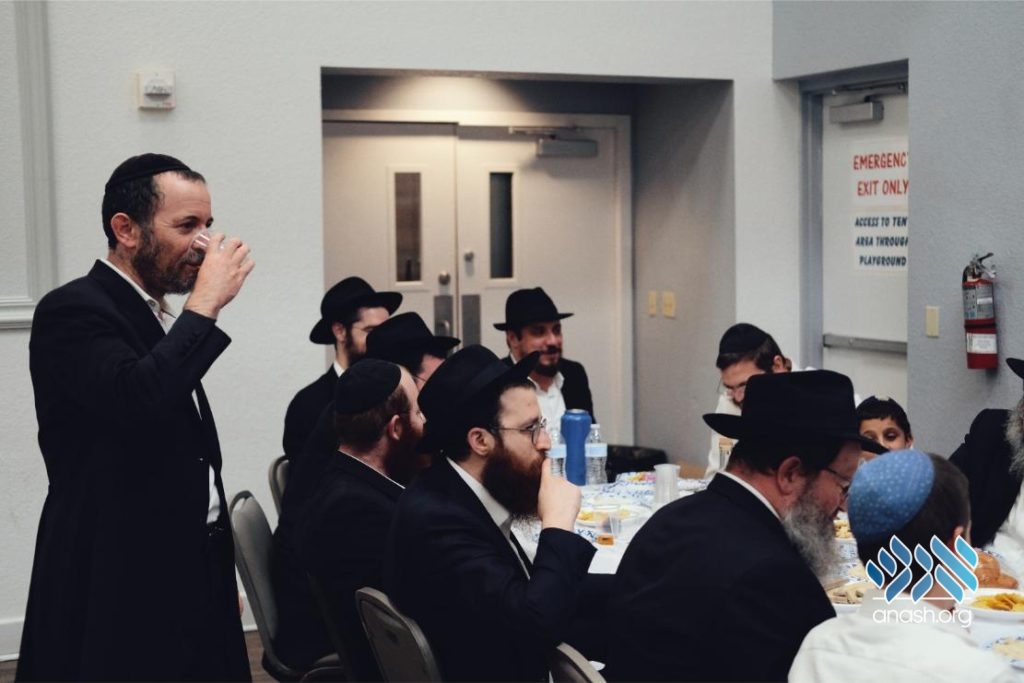 Members of the Anash community in Coral Springs, Florida, gathered on Motzei Shabbos for a hachana l’selichos farbrengen led by Rabbi Shloime Denburg, followed by dancing and moving selichos.