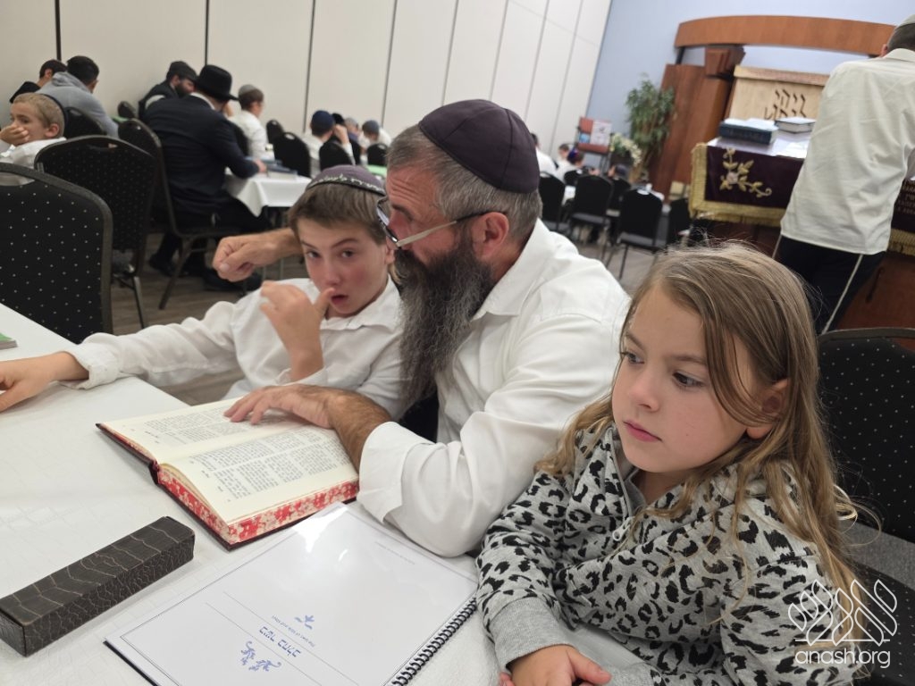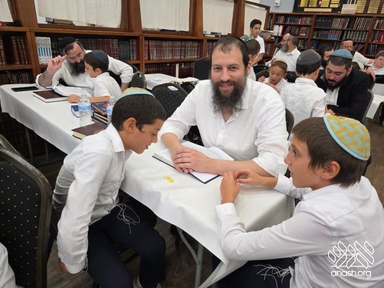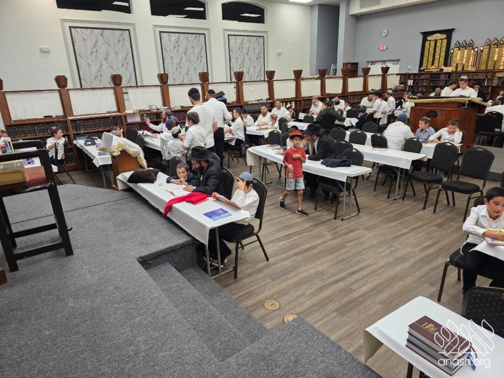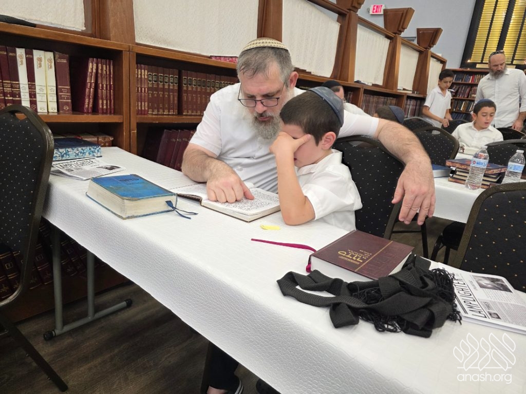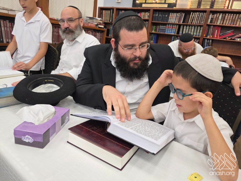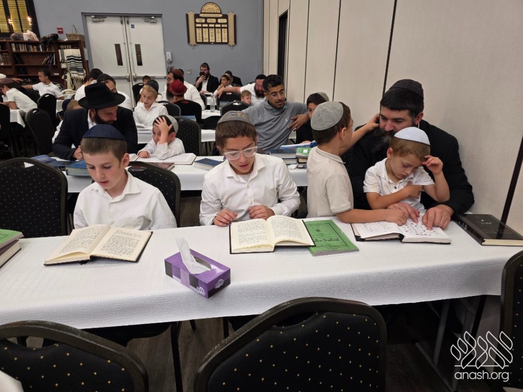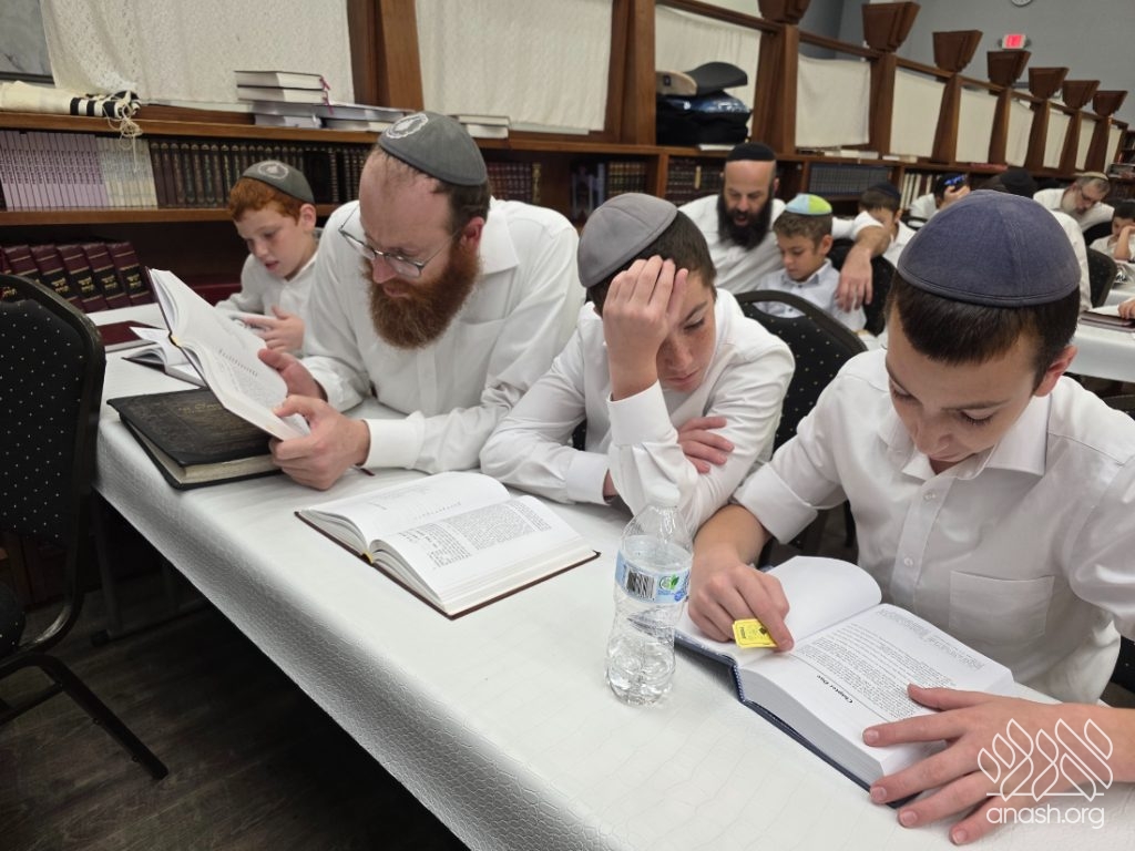 The program gathered fathers and sons from across the community for an hour of quality learning time after Shabbos concluded. The fathers chose a sefer, reviewing material their sons had studied in school, or learning a new topic together with their children.