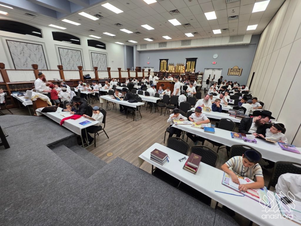 Following the learning, the children recited the 12 pesukim, led by the boys who has studied the most studiously. A number of exciting prizes were then raffled off, and the boys enjoyed refreshments and Pizza.