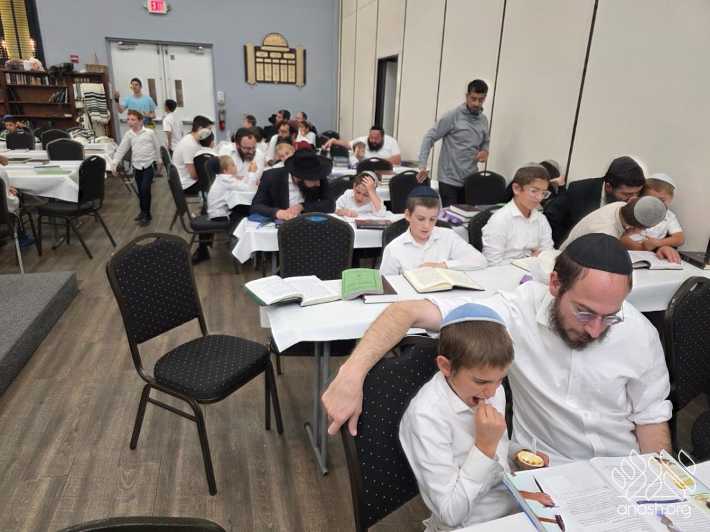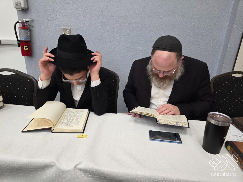 Avos Ubanim started in Coral Springs with great excitement. Fathers and sons gathered to learn Torah, followed by Pesukim, raffles, and pizza.