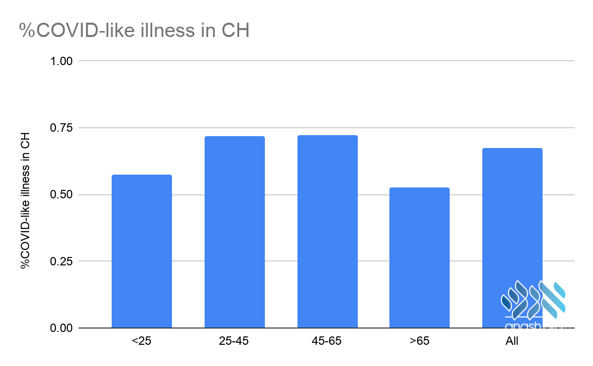 Responses to the survey continue to come in, and any numbers below will be updated as we obtain new information and as we continue to analyze. Based on the responses so far, it would seem that a little over 70% of those in the age group 25-65 has been sick with a COVID-like illness, while only approximately 55% of those above age 65 have reported a COVID-like illness.