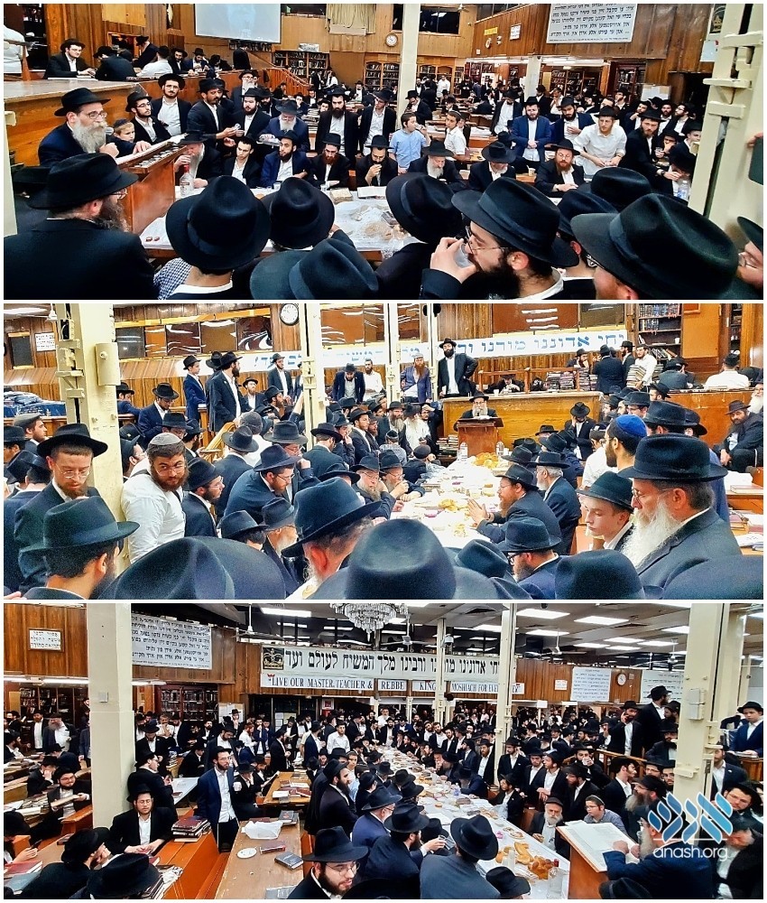 As per the Rebbe’s request that siyumim be held on each of the nine days, the first siyum was held on Tuesday night in 770 Eastern Parkway following maariv.