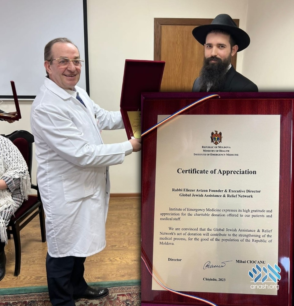 The Ministry of Health of Moldova recognized the work of Rabbi Lazer Avtzon of the Global Jewish Assistance & Relief Network for his contribution to the hospitals in the country.