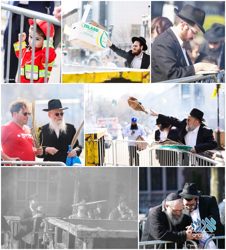 Gallery 1: Anash and bochurim hurried on Friday morning, Erev Pesach, to fulfill the mitzva of biur chometz in a large trash container set up in front of 770 Eastern Parkway.