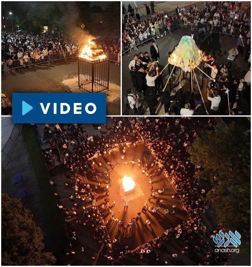 Crown Heights families gathered in front of the George Wingate High School on Kingston Avenue for a Lag Baomer bonfire to celebrate the light of Rashbi and pnimiyus haTorah.