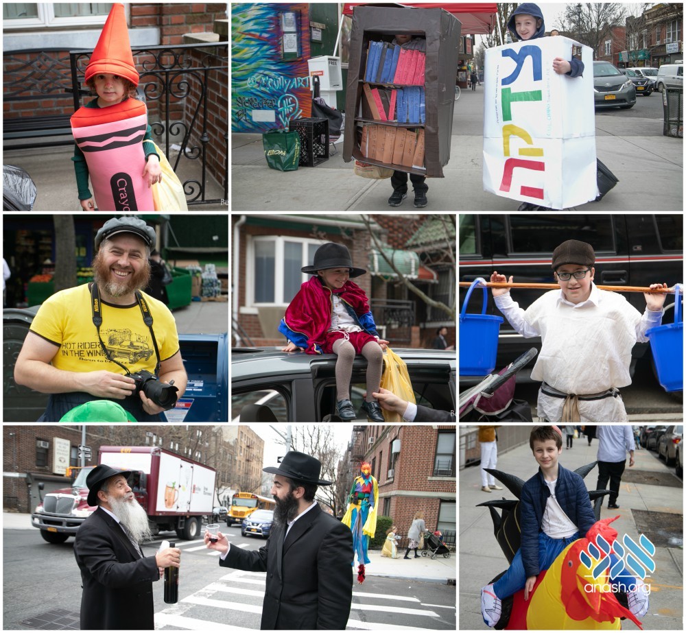The streets of Crown Heights were full with people on their way to perform the mitzvos of the day, all while dressed in creative and cheerful costumes.