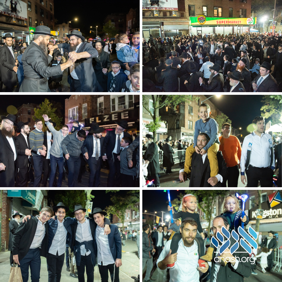 Thousands of yidden gathered in Crown Heights for Simchas Beis Hashoeiva on Motzaei Yom Tov.
