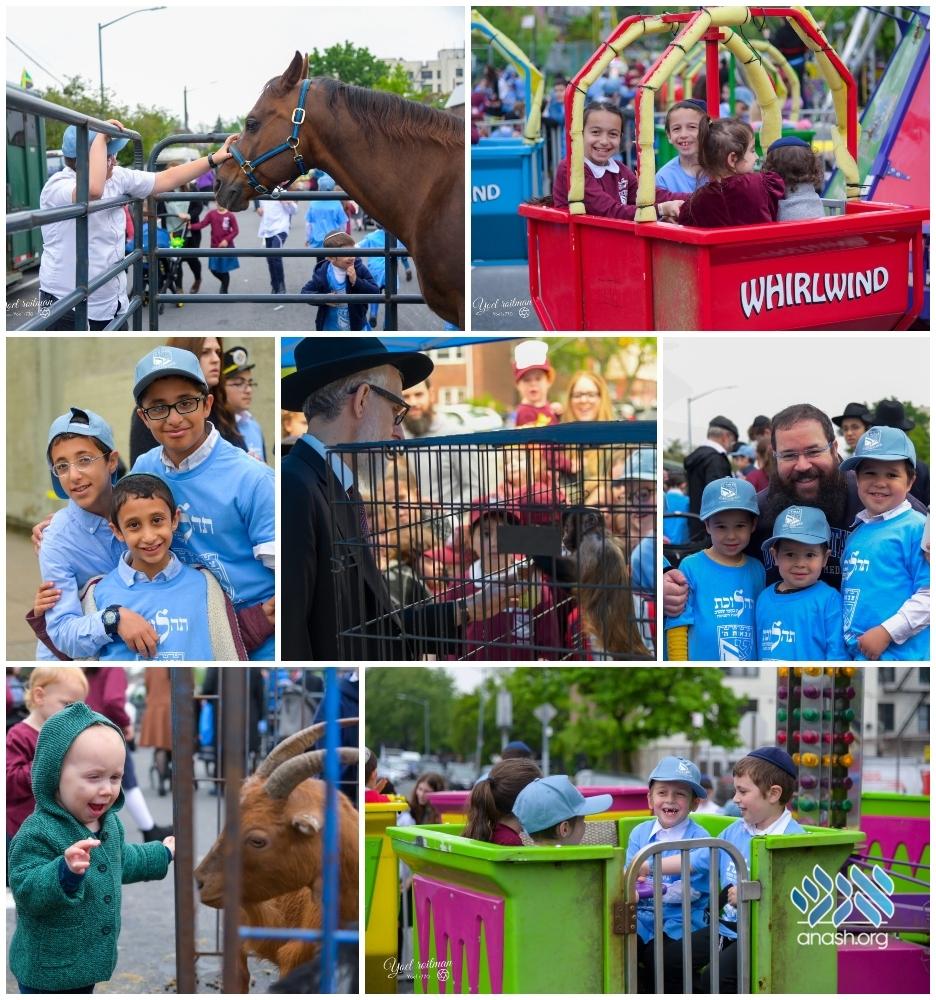 Hundreds of Crown Heights families enjoyed a free Lag B’omer street fair on Thursday, with rides, a petting zoo, bounce houses, exciting activities, and even free ice cream.