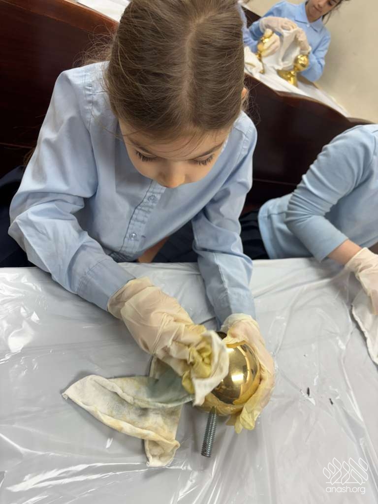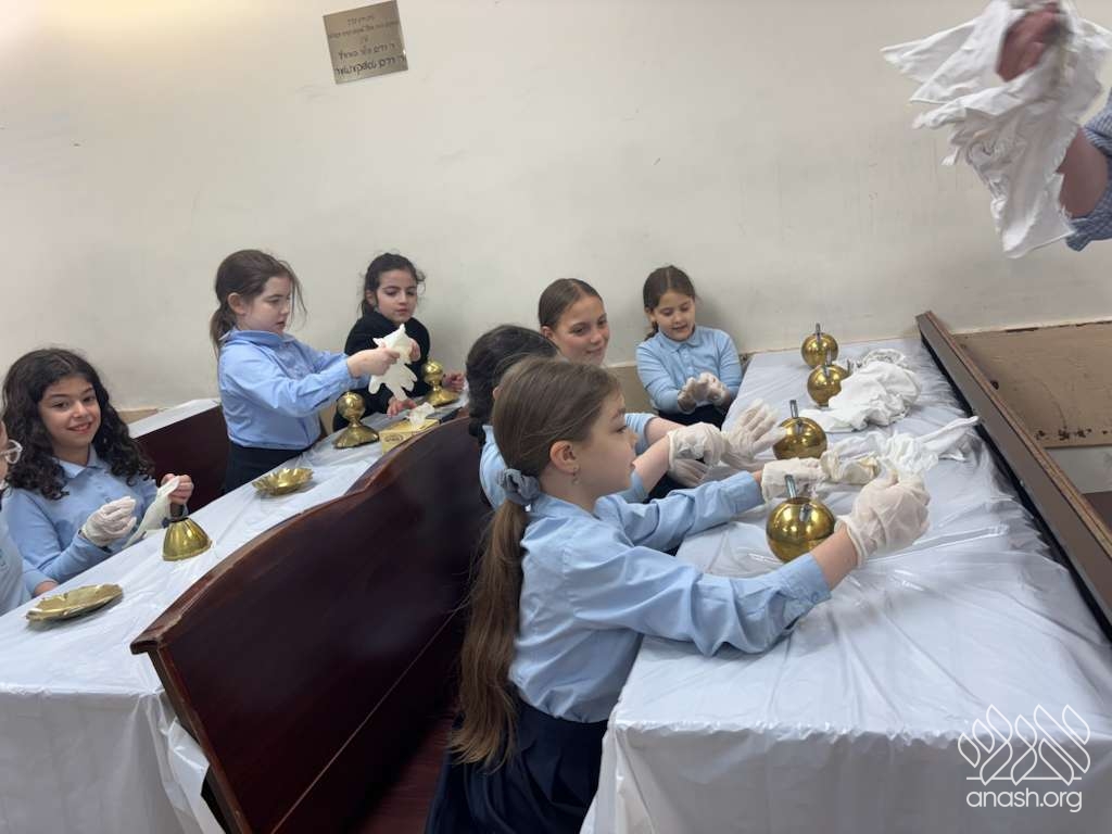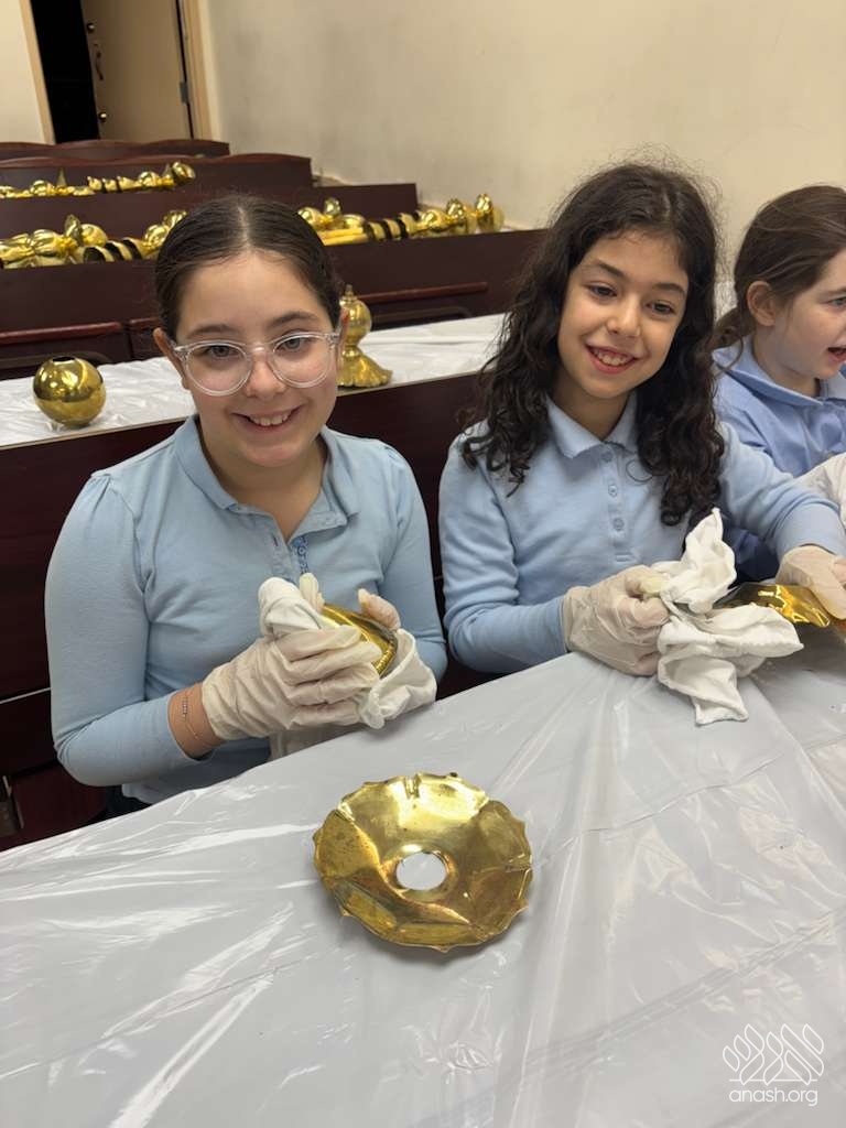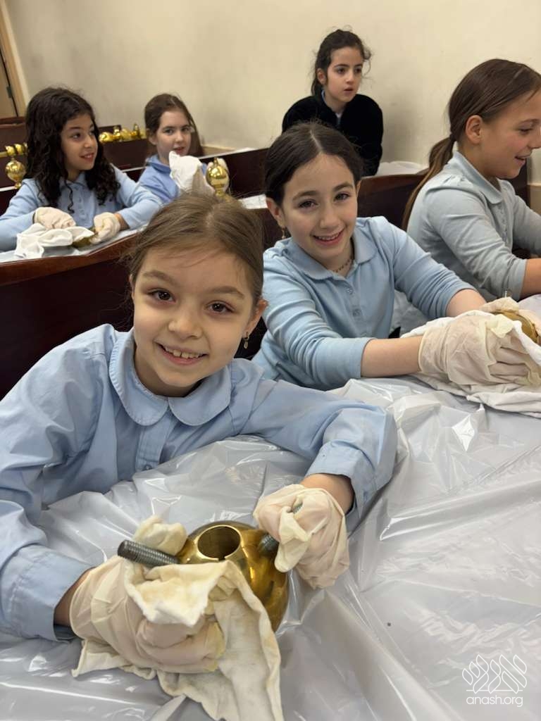Ahead of Chanukah, the iconic menorah belonging to 770, modeled after the menorah in the Beis Hamikdosh, was polished by 4th-grade girls from the Ateres Chaya Mushka school.