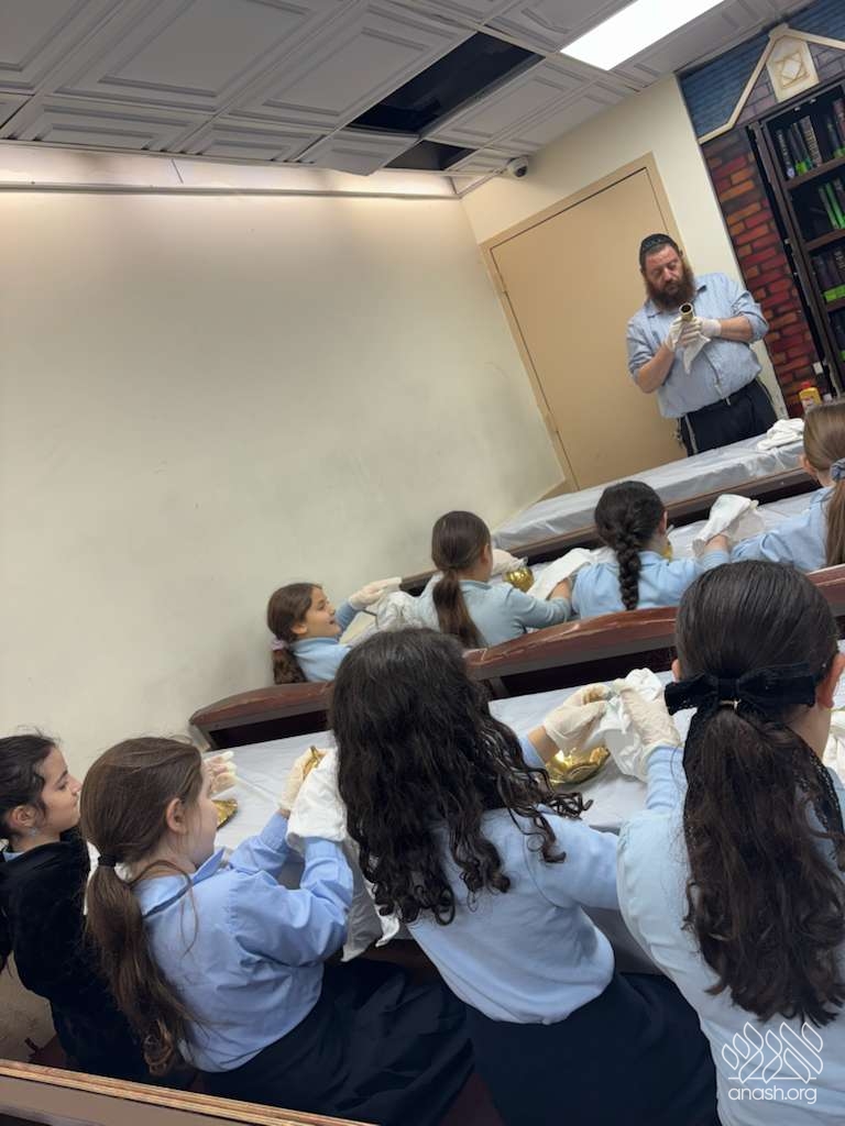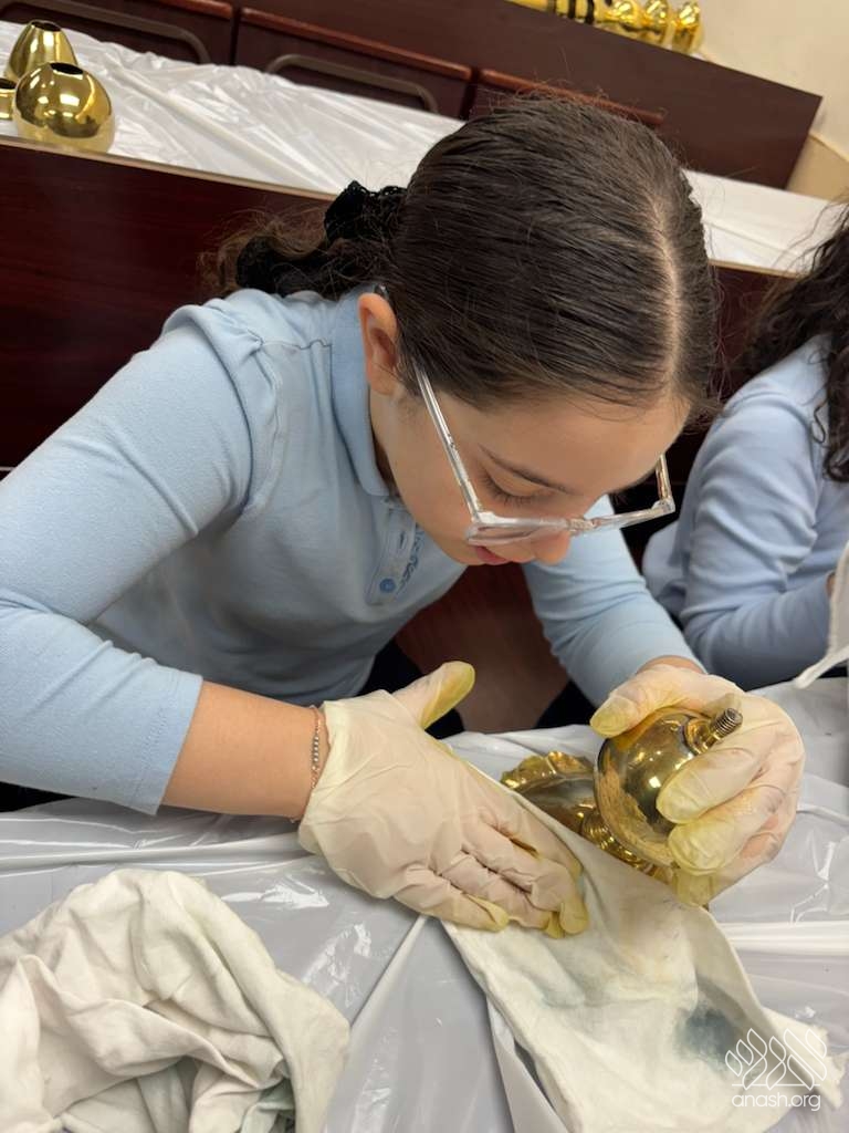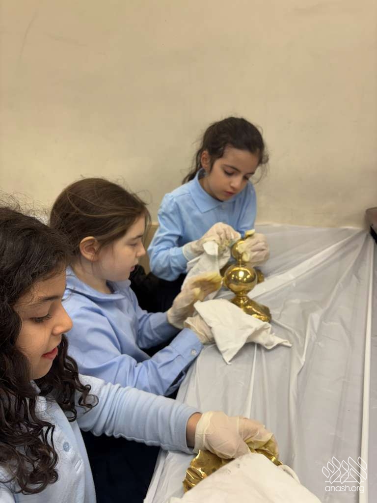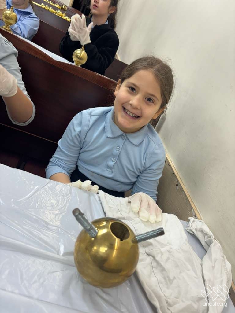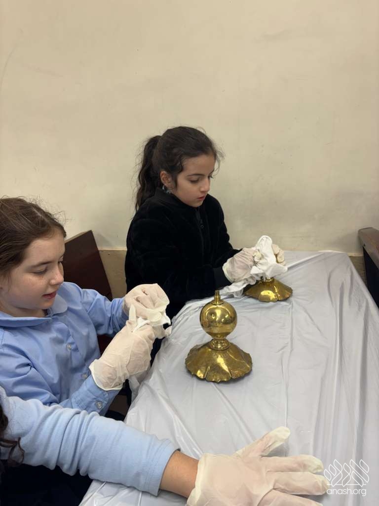 Ahead of Chanukah, the iconic menorah belonging to 770, modeled after the menorah in the Beis Hamikdosh, was polished by 4th-grade girls from the Ateres Chaya Mushka school.