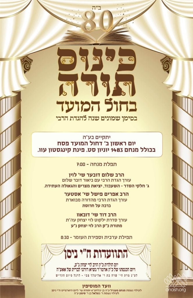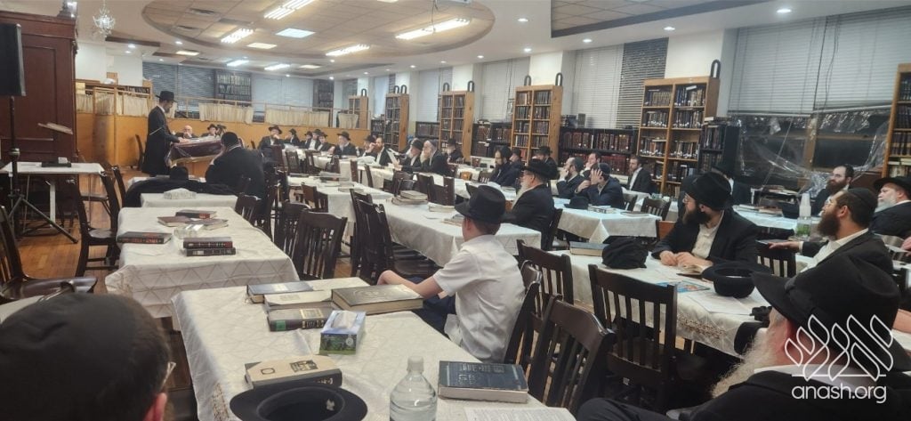 A special Kinus Torah and Farbrengen took place in Crown Heights, organized by the Vaad Hamosifin. The event marked 18 Nissan, the birthday of Harav Levi Yitzchak, the Rebbe’s father, and the day of the Rebbe’s bris.