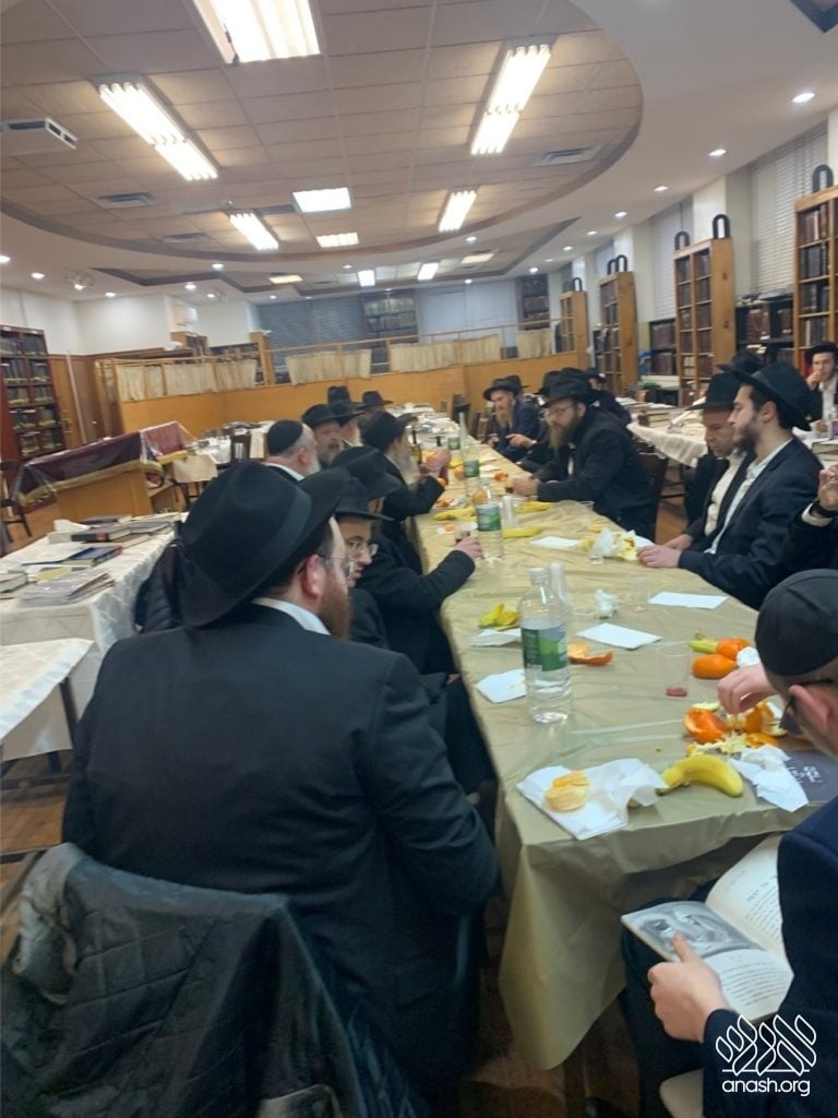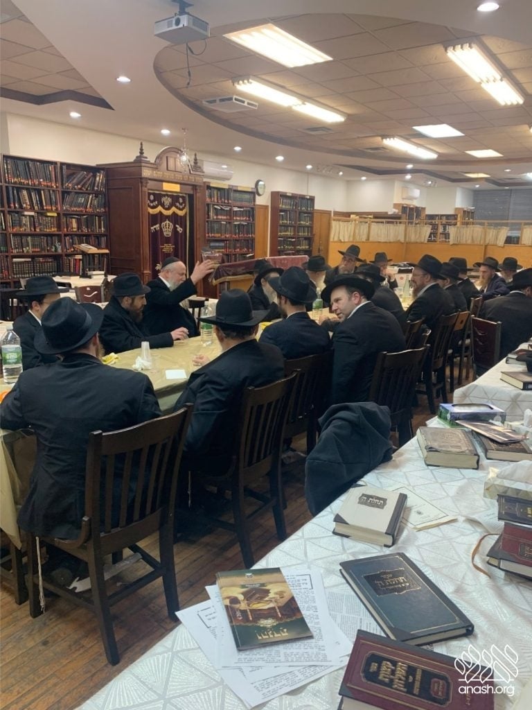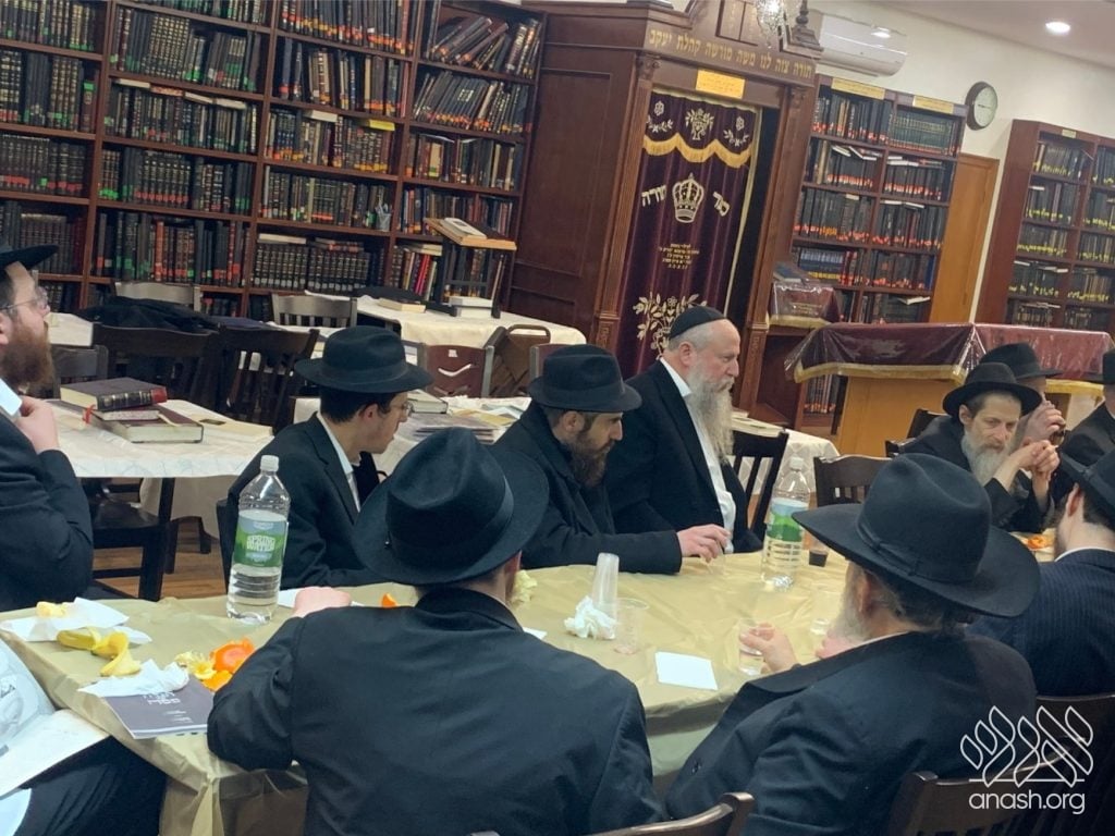 A crowd gathered at Kollel Menachem near 770 to hear fascinating lessons on the Rebbe’s Haggadah from Torah scholars specializing in its explanation, as well as teachings from Reb Levik.