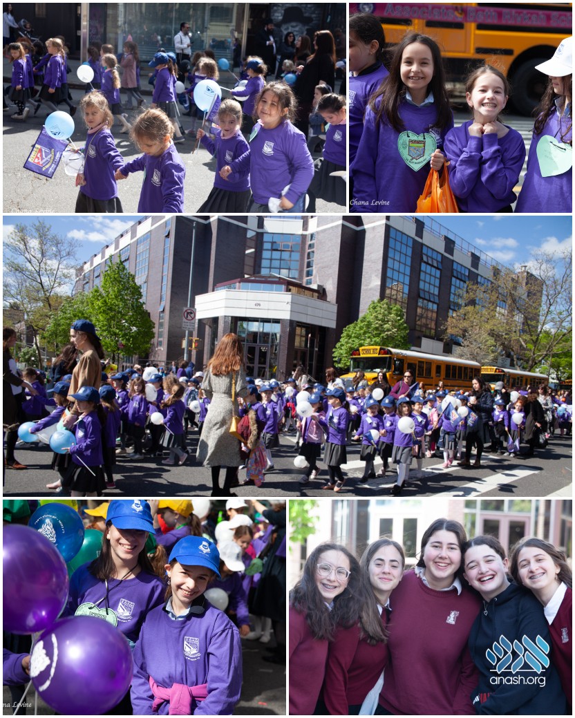 Thousands of children proudly marched down Crown Heights streets in the Grand Lag B’omer March on Friday morning arranged by the schools in conjunction with Tzivos Hashem. Gallery #1: Beis Rivkah Elementary.