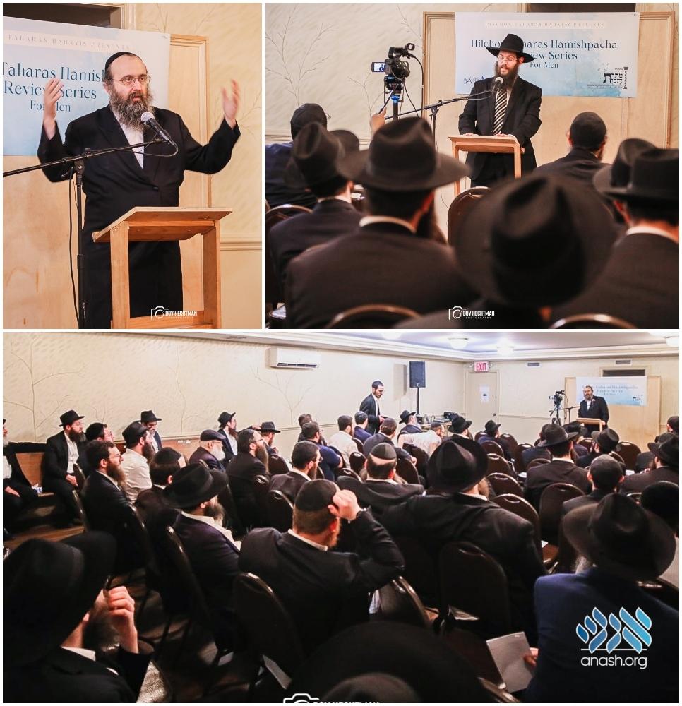 Men from the Crown Heights community gathered on Thursday night for the first shiur from Machon ‘Taharas Habayis’ with Harav Yosef Braun. The topic of the class was ‘how to ask a shaila‘.