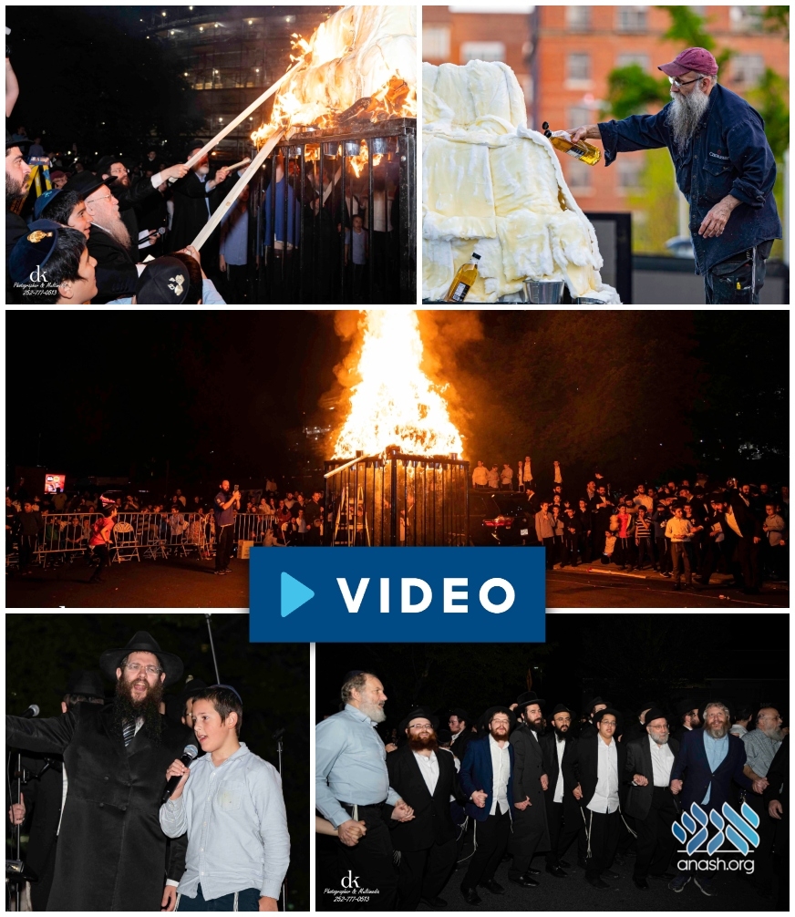 A grand unity bonfire for the entire Crown Heights community was held on Monday night, the eve of Lag B’Omer, with residents joining the joyous dancing and celebrations.