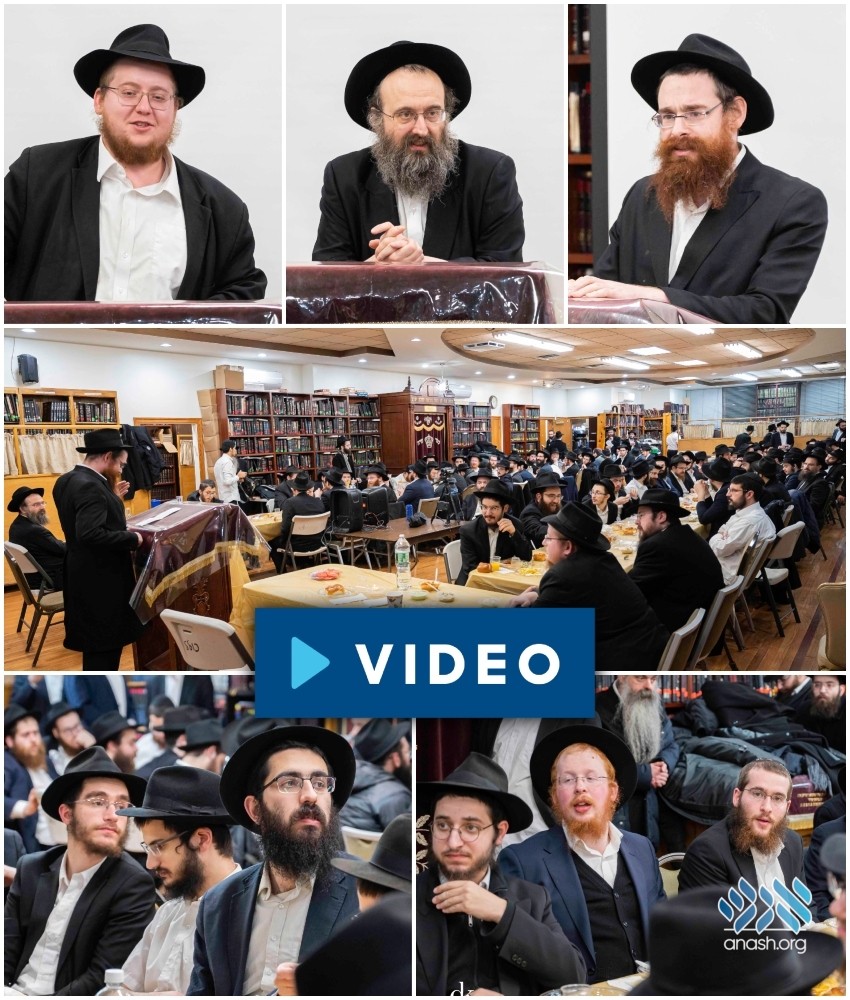 Addressing the farbrengen were members of Hanhalas Hayeshiva and guest speaker Rabbi Yosef Braun, member of the Crown Heights Bein Din.