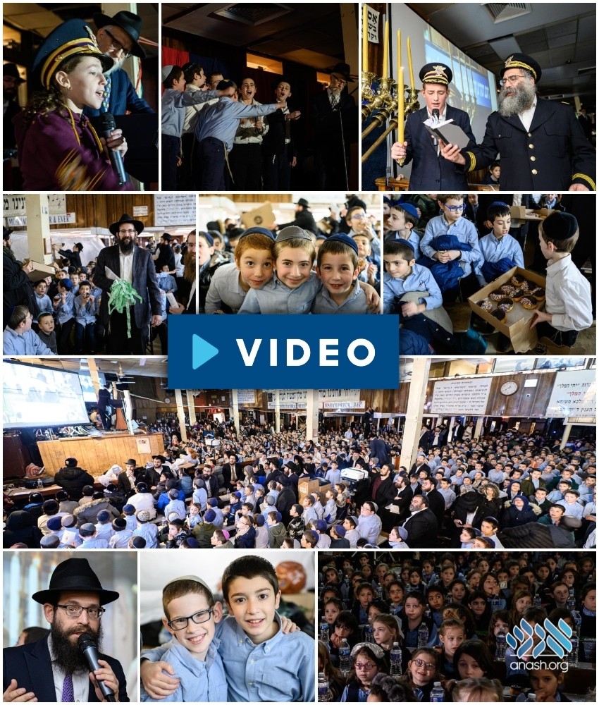 Thousands of children from Crown Heights schools joined together in 770 on Wednesday for two grand Chanukah rallies, with the 12 pesukim, music, and special video presentations.