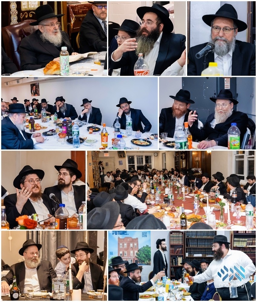 Rabbi Nissan Mangel farbrenged at Ksav Sofer, with a large crowd in attendance.