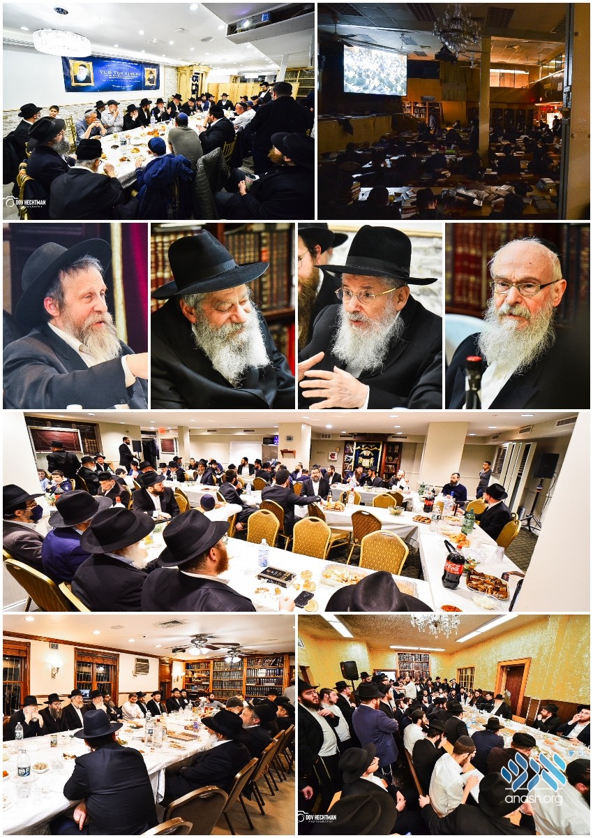 Rabbi Nissan Mangel, rov of Ksaf Sofer, farbrenged at the Lincoln Place Shul.