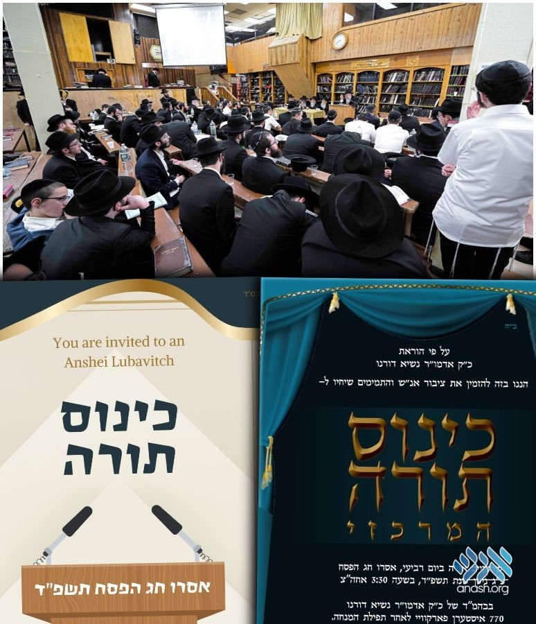 On Wednesday, Isru Chag, two special Torah gatherings will take place in Crown Heights: the central Kinus Torah in 770, as well as a kinus at the Anshei Lubavitch community shul.