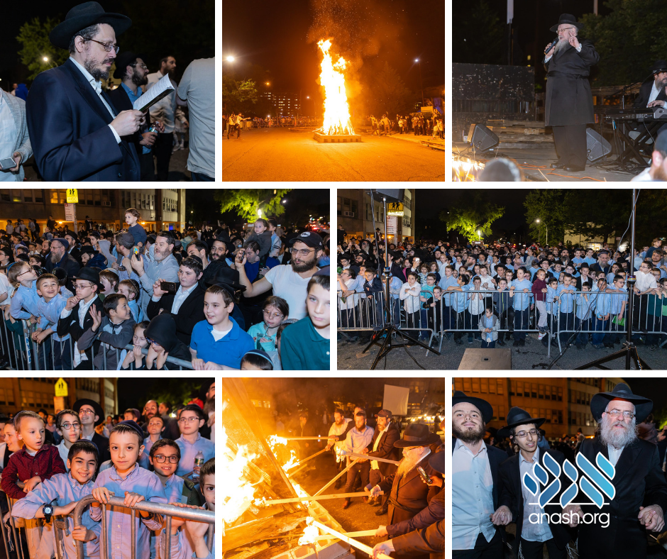 Hundreds of children and adults united for a Lag BaOmer celebration with live music, dancing, and a bonfire.