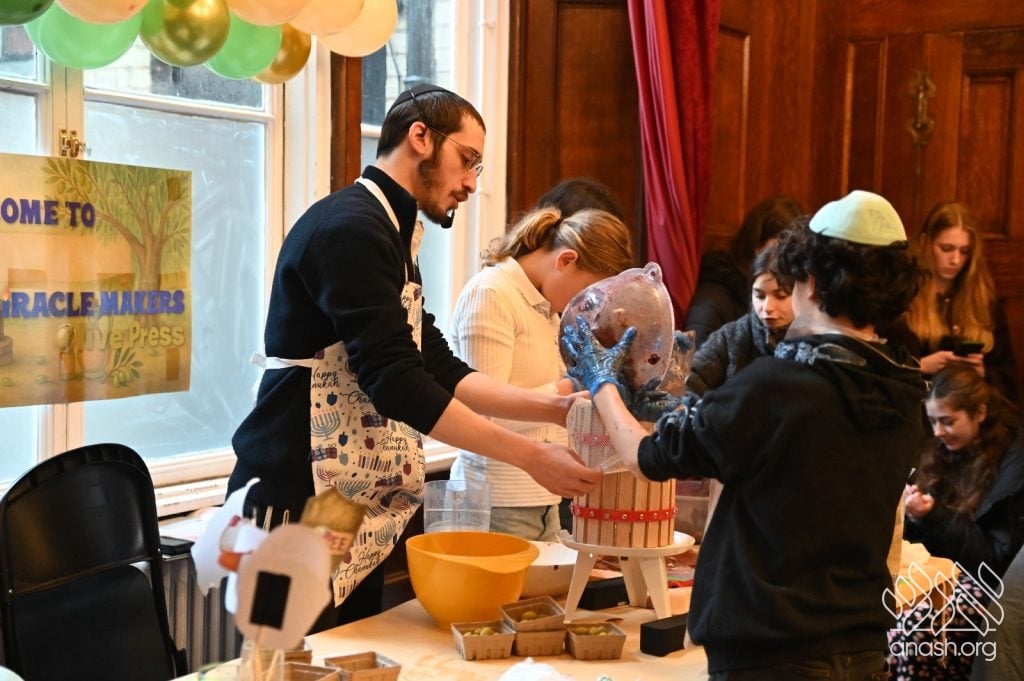 More than 9,000 children at over 300 Chabad Houses worldwide didn’t just learn about the miracle of oil, they crushed olives through CKids Miracle Makers Olive Press with a lesson of how an olive gives its best oil when crushed.