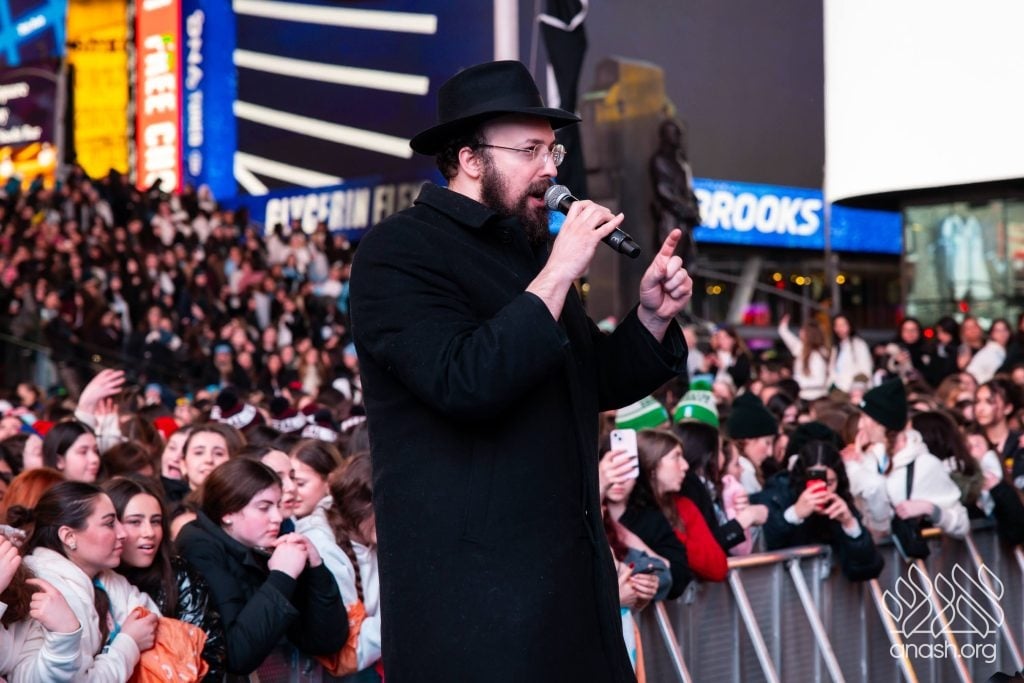 The screens of Times Square glowed with Jewish imagery on Motzei Shabbos as thousands of Jewish teens packed the crossroads of the world. Energized by an uplifting Shabbos in Crown Heights at the 18th CTeen International Shabbaton, the largest gathering of Jewish teens in the world, they were now leading one of the most public displays of Jewish pride the world has ever seen.