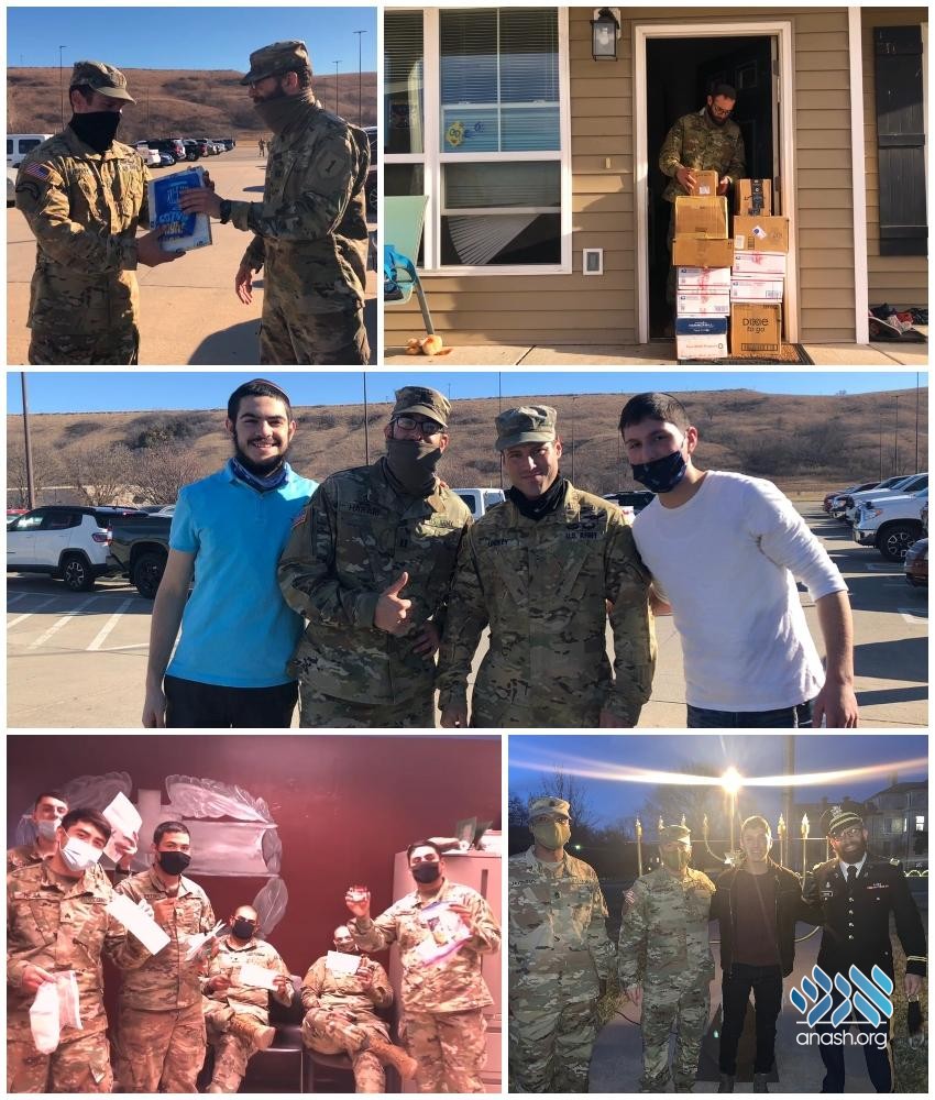 Duvy Burston and Yitzy Zelenko flew to Fort Riley, Kansas to bring Chanuka joy to soldiers stationed there. They brought along gifts from Chabad Teens across the Unites States.