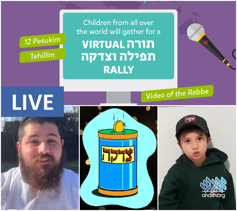 Hosted by Myshliach and Merkos 302, the rally focuses on the three pillars of Torah Tefillah & Tzedakah to give chizzuk to children during the ongoing pandemic.