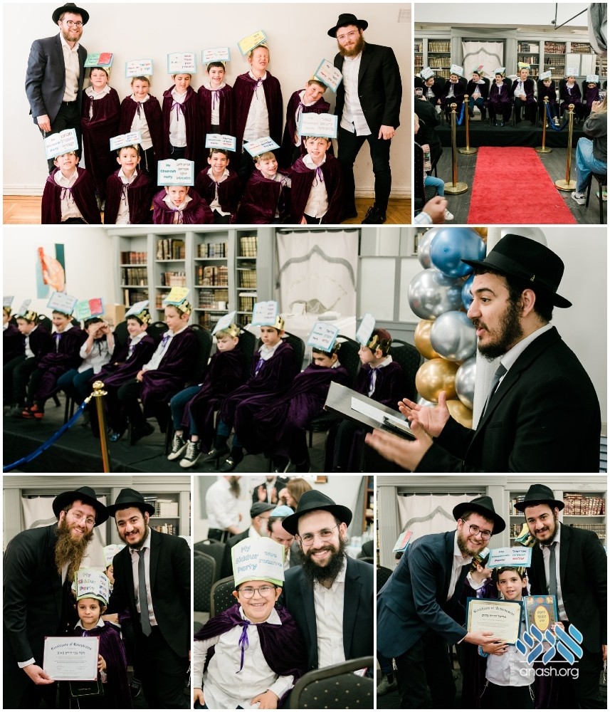 This past Sunday, the halls of Nosson’s Shul in Crown Heights echoed with the joyous sounds of young boys celebrating Siddur and Chumash parties for Pre1a and first-grade classes, respectively.
