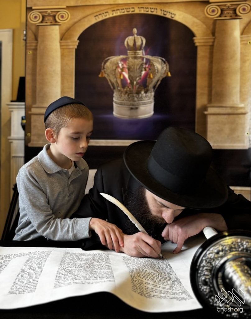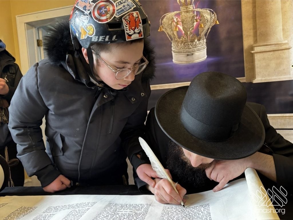 On Yud Tes Kislev, 5782, he began the project of writing the Sefer Torah. He wrote whenever he had free time, steadily advancing until, in the summer of last year, he completed the Torah. The following months were spent meticulously checking and rechecking each letter to ensure there were no errors.