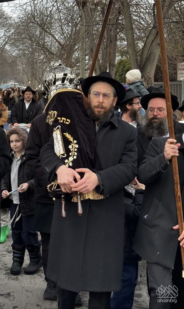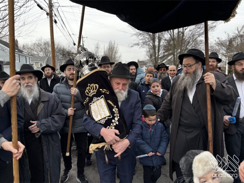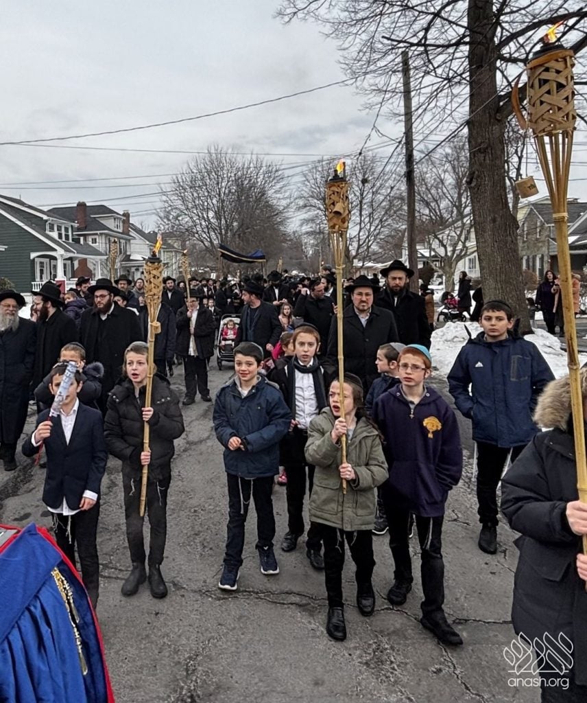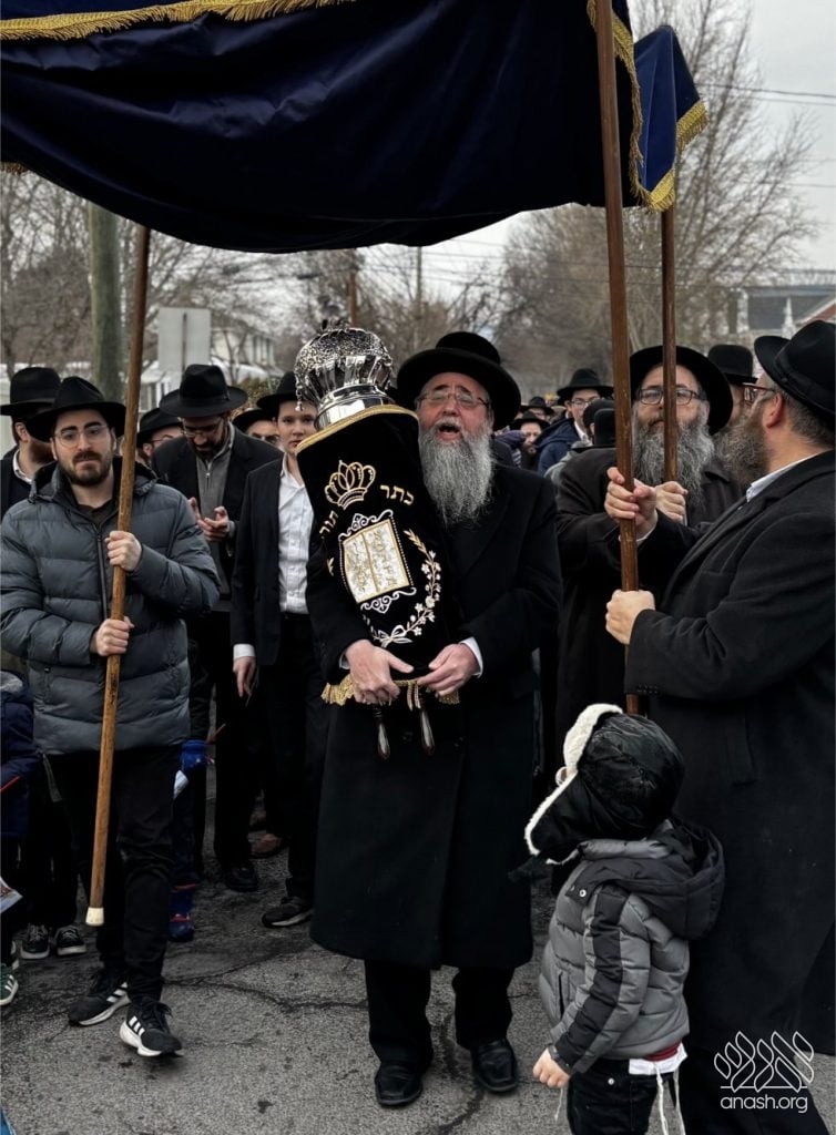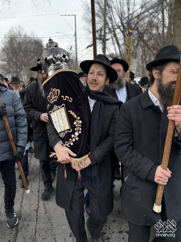 The final letters were written in the Zirkind home, where the project had taken place over the years. From there, the community marched in a grand parade with torches, pekelach, and music by R’ Dovid Altein to the Beis Moshe shul.