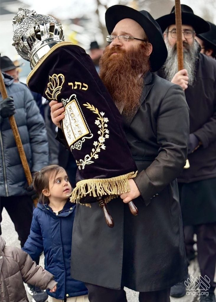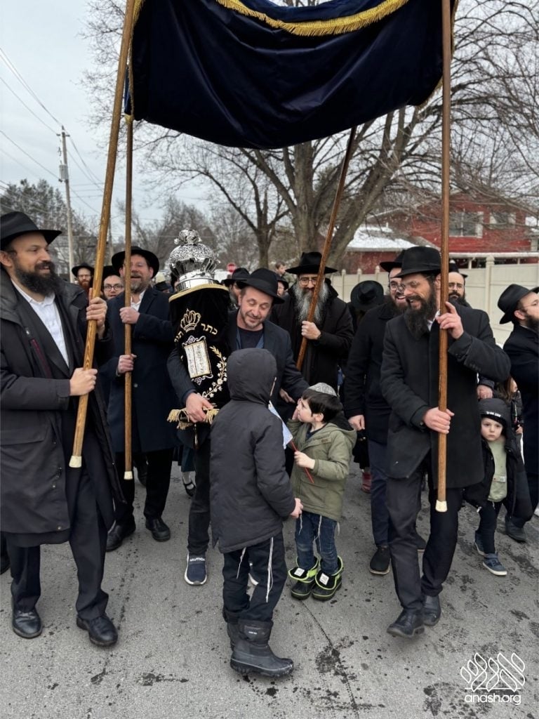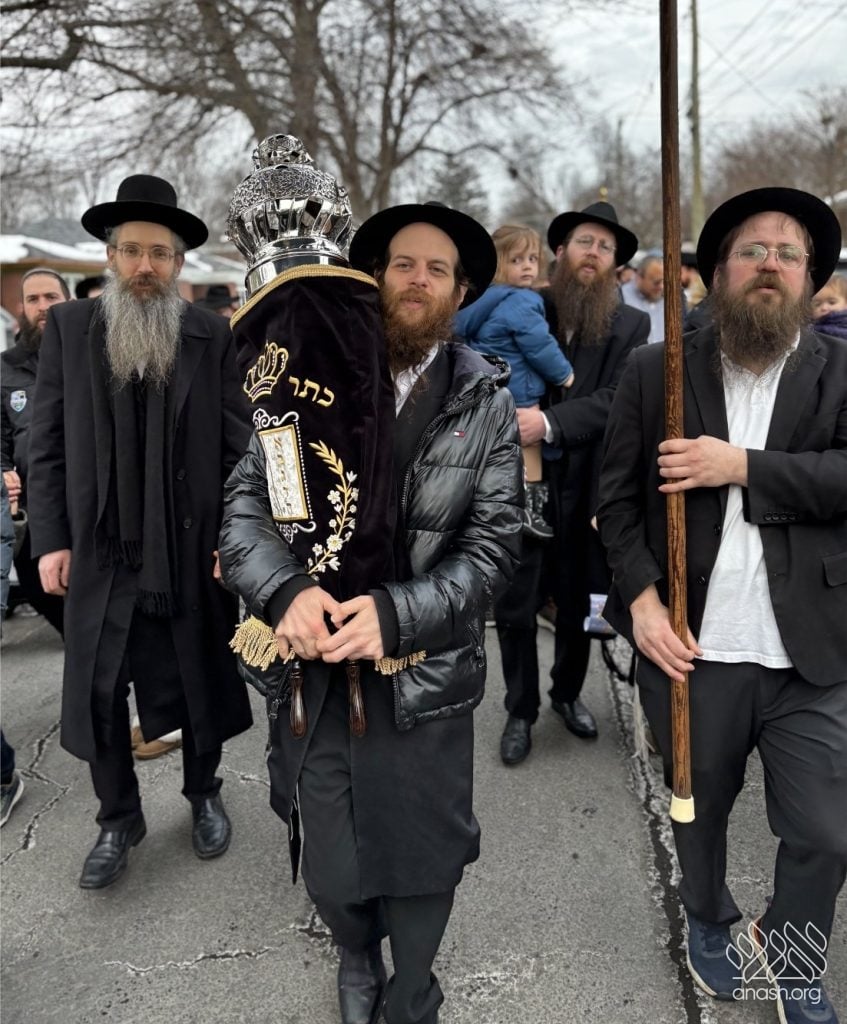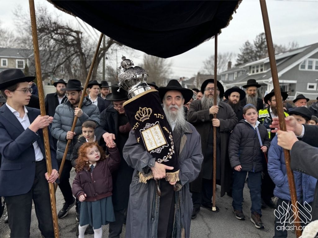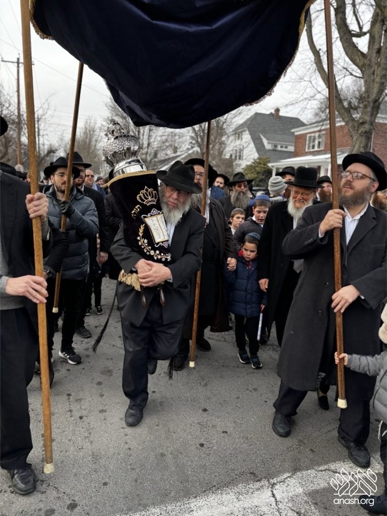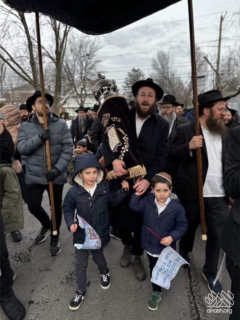 The final letters were written in the Zirkind home, where the project had taken place over the years. From there, the community marched in a grand parade with torches, pekelach, and music by R’ Dovid Altein to the Beis Moshe shul.
