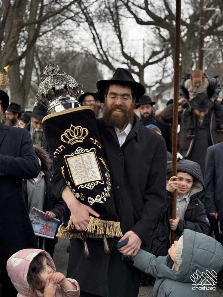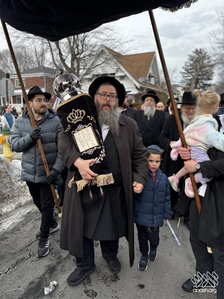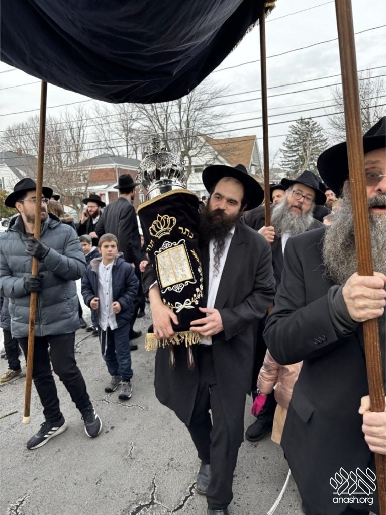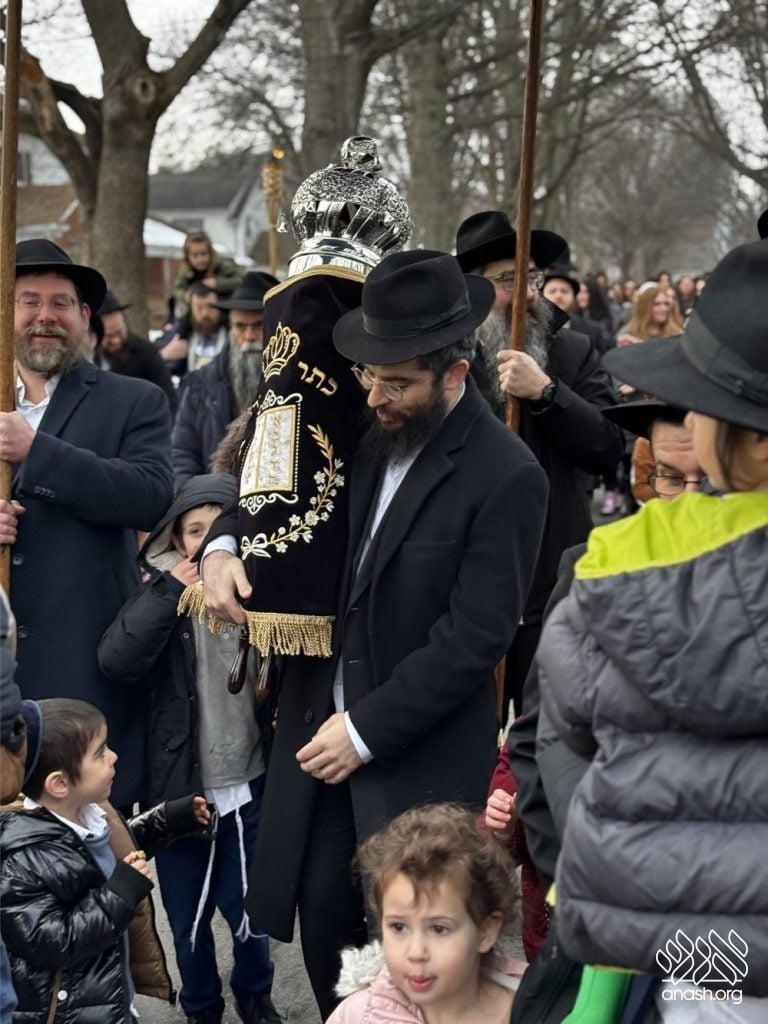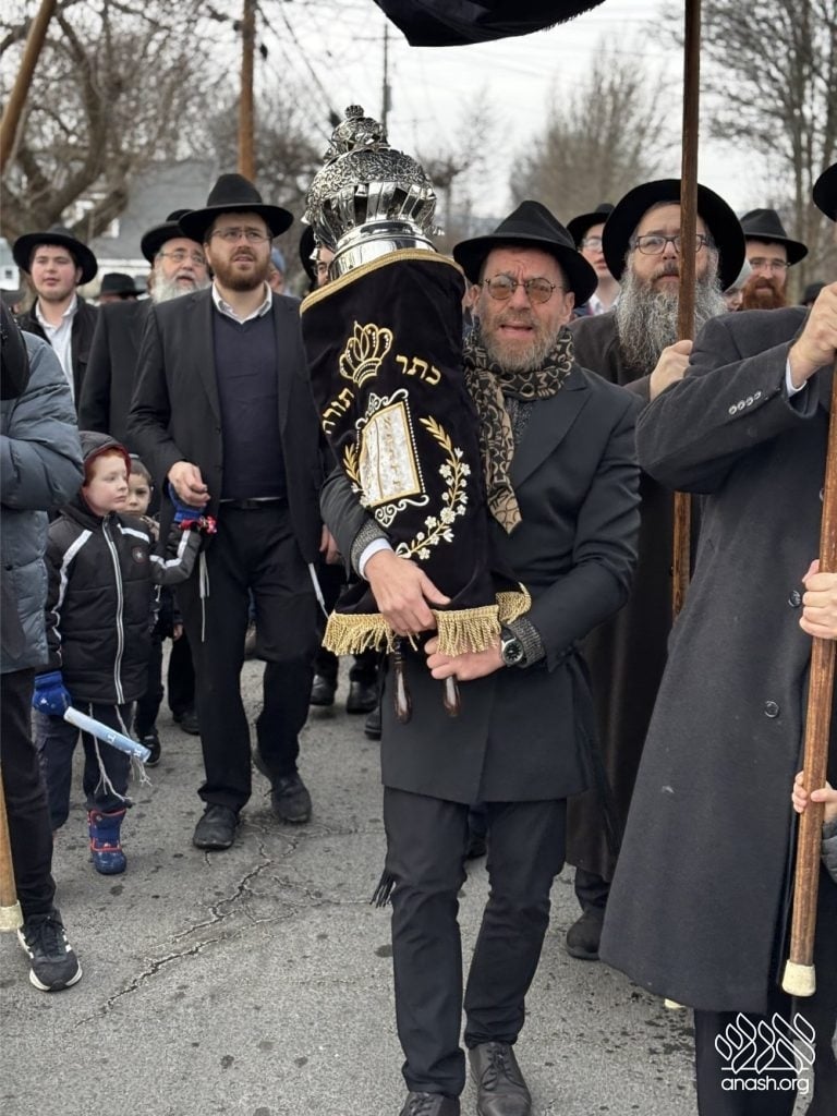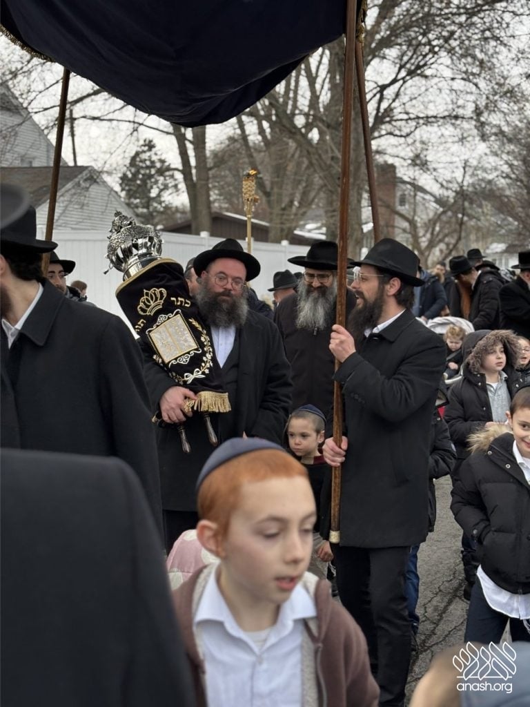 Hundreds of community members and rabbonim participated, including local Rov, Rabbi Gedalya Oberlander, and Rabbi Mordechai Fine, longtime mara d’asra of Scranton. Joyous hakafos took place at the shul before everyone gathered for a celebratory seudas mitzvah and farbrengen.