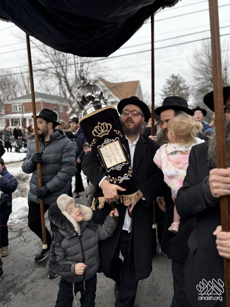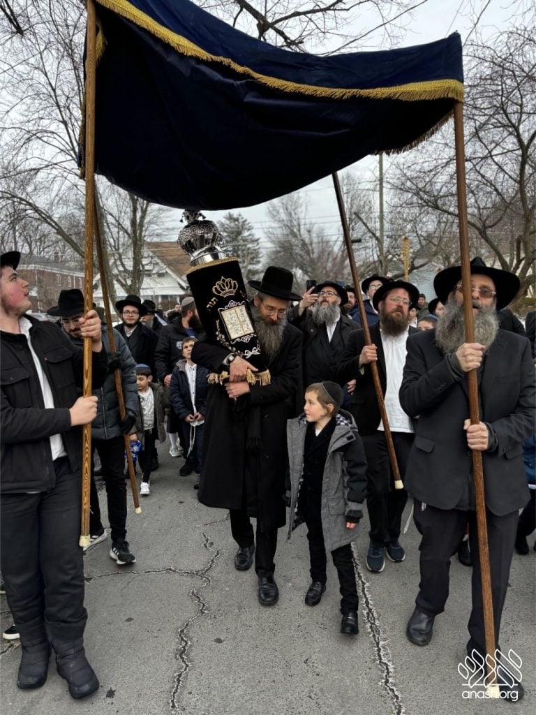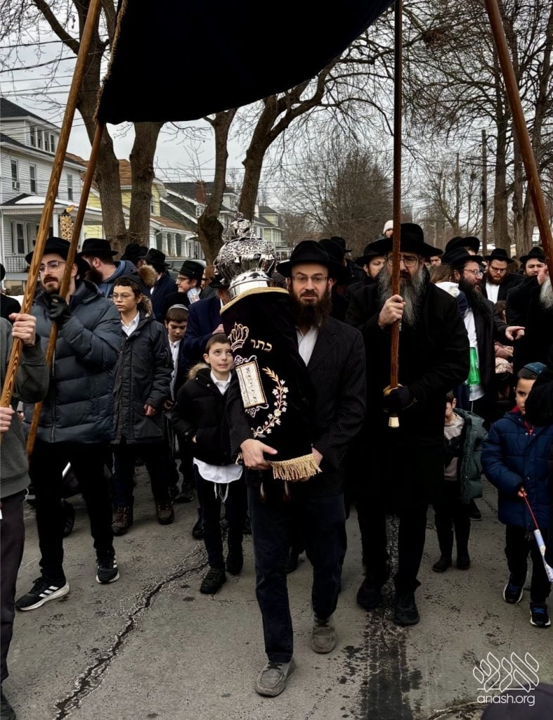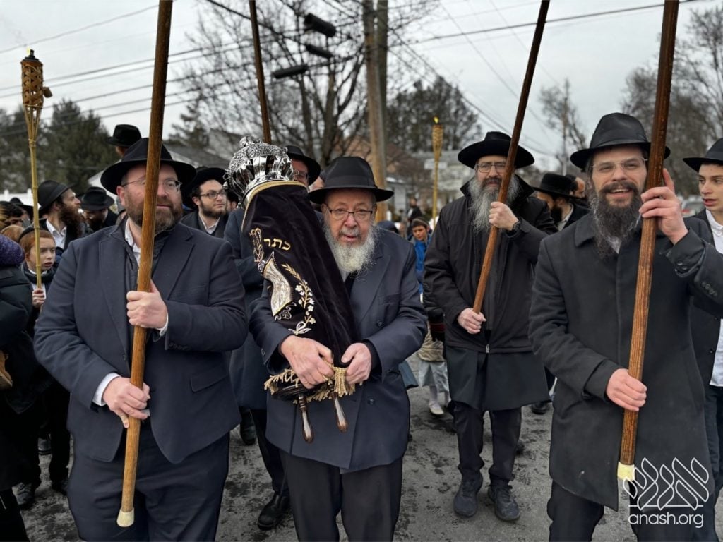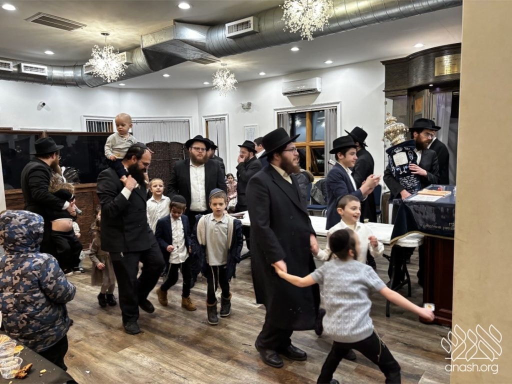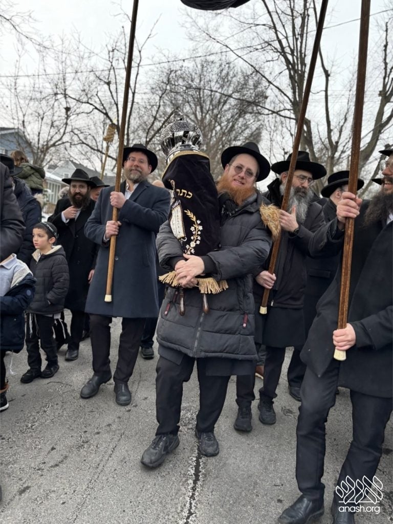 Hundreds of community members and rabbonim participated, including local Rov, Rabbi Gedalya Oberlander, and Rabbi Mordechai Fine, longtime mara d’asra of Scranton. Joyous hakafos took place at the shul before everyone gathered for a celebratory seudas mitzvah and farbrengen.