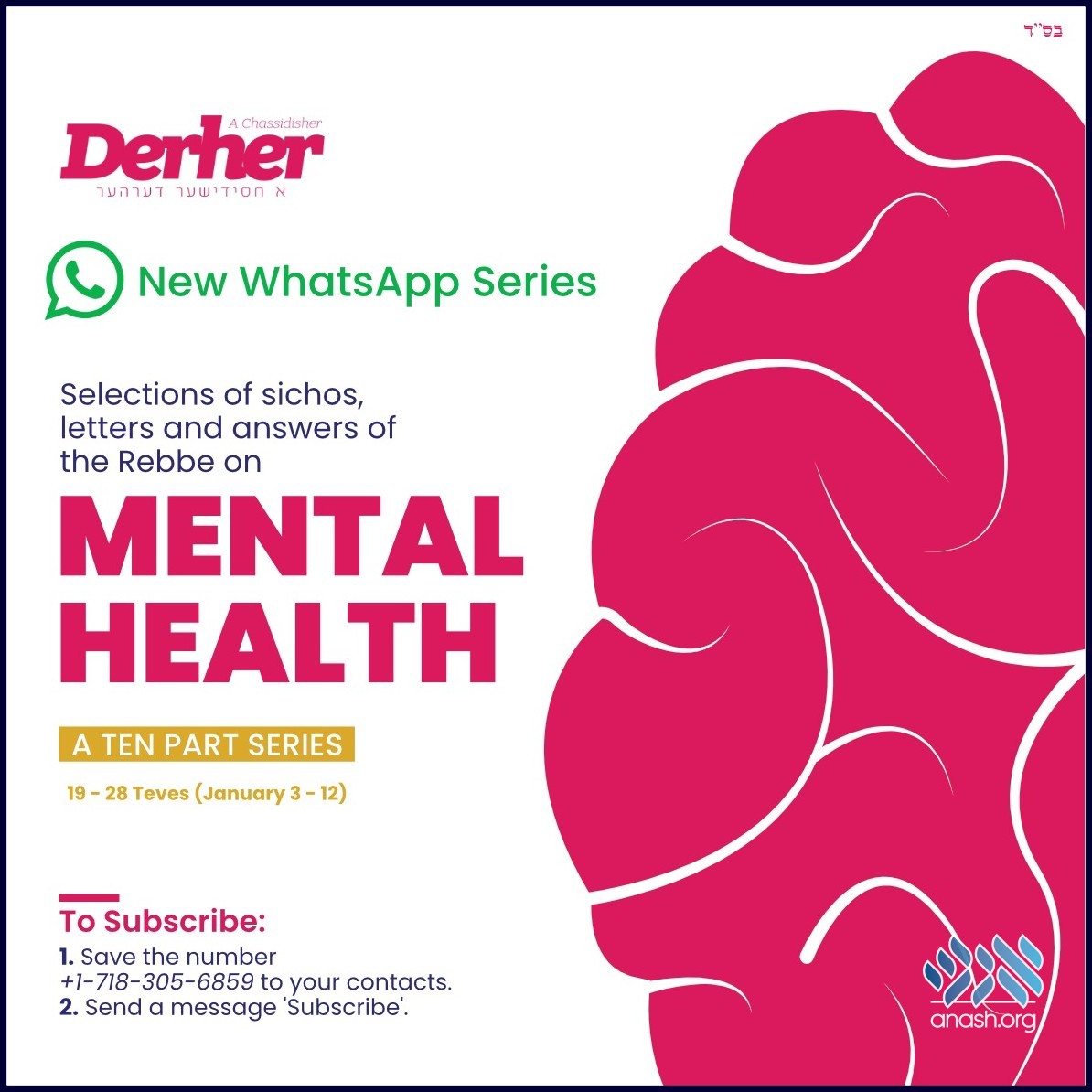 Beginning on Sunday, 19 Teves, A Chassidisher Derher will begin a series of daily WhatsApp messages selections of the Rebbe’s advice on dealing with mental health and wellness.