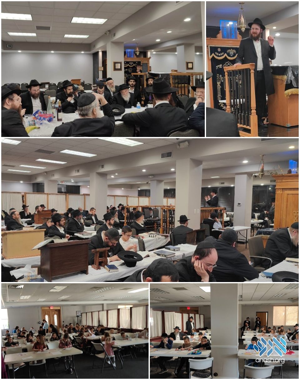 An insightful Kinus Torah was held in Detroit on Chol Hamoed Pesach, followed by a special farbrengen led by Rabbi Sholom Ber Chaikin of Cleveland, Rabbi Elyokim Wolf of Morristown/Eretz Yisroel, and Rabbi Shmaya Shmotkin of Detroit.