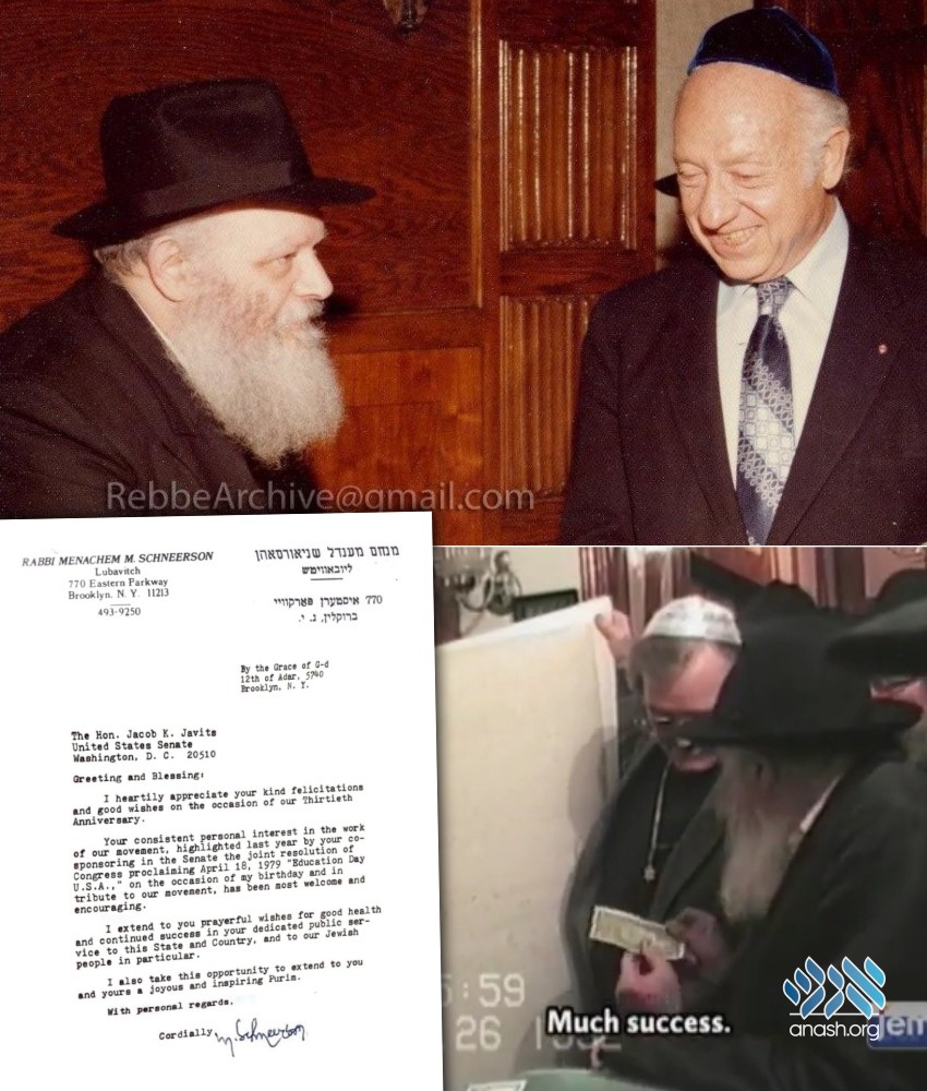 “Your consistent personal interest in the work of our movement, highlighted last year by your co-sponsoring in the Senate the joint resolution of Congress proclaiming April 18, 1979 “Education Day U.S.A.,” on the occasion of my birthday and in tribute to our movement has been most welcome and encouraging,” the Rebbe wrote in the letter thanking Javitz for his congratulations from Yud Shevat.