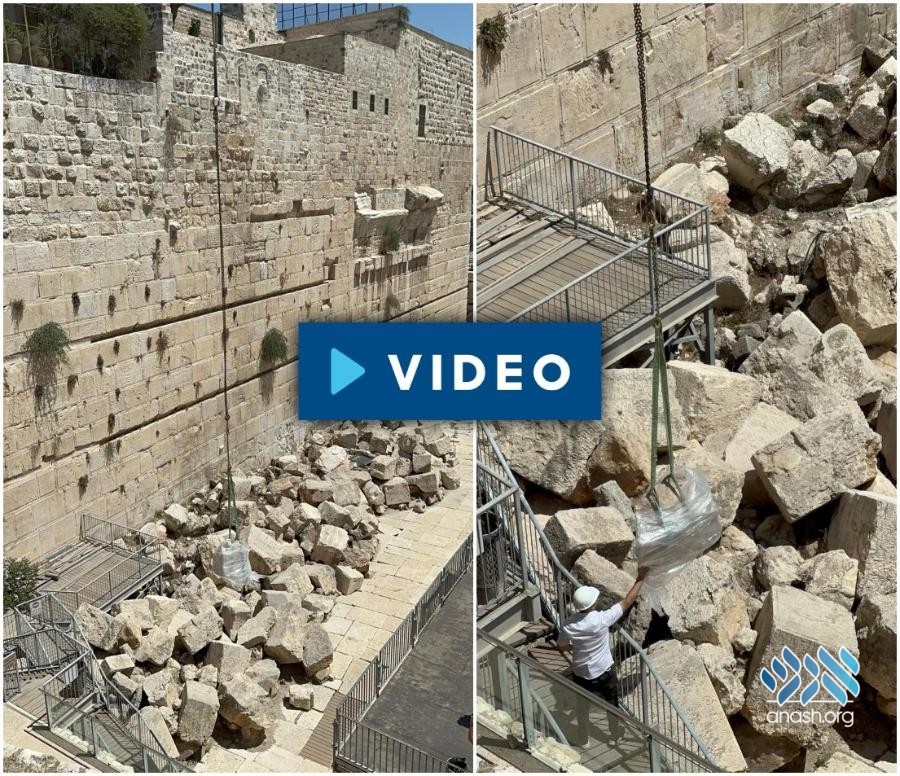 On the 11th of Menachem Av, 5778, at 5:46 AM during the Netz Hachama shachris, the day after Tisha B’Av, a 400-kilogram stone suddenly detached from the Kosel and landed on the ground. A woman who was standing nearby at the time was miraculously unharmed.
