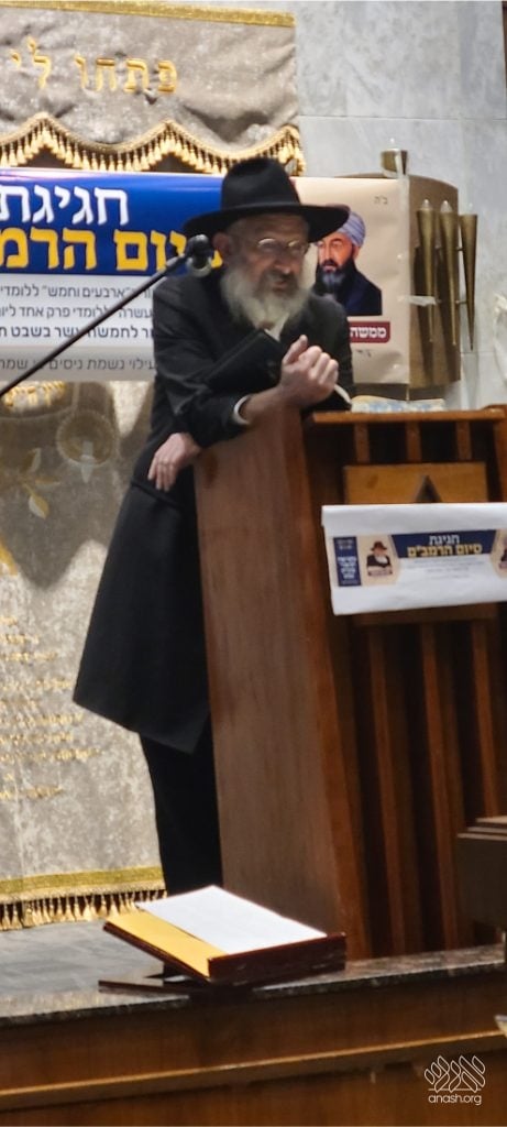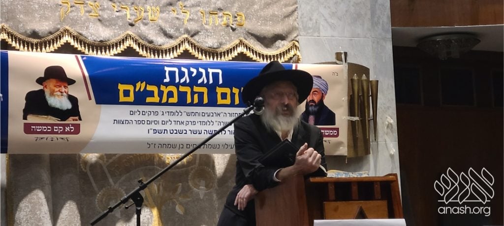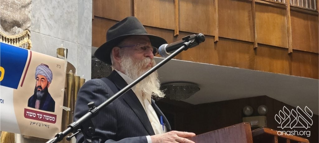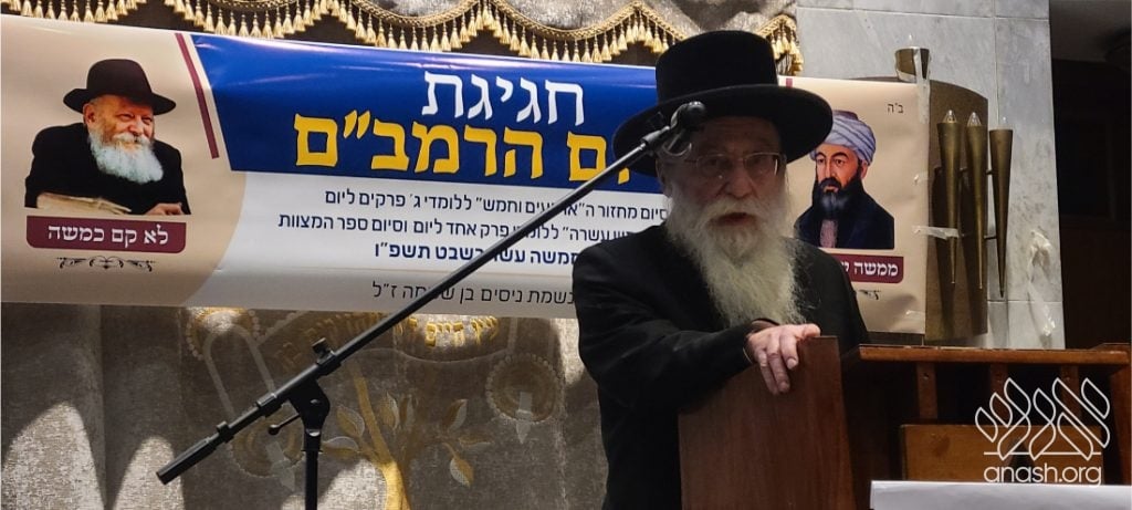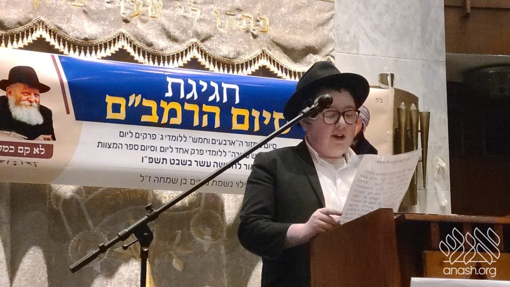 The event was emceed by Rabbi Shmuel Kramer, who invited Rabbi Shmuel Zalmanov to recite the Rebbe and Rebbetzin’s kapitelach. A video presentation of the Rebbe regarding Siyum HaRambam was then screened for the audience.