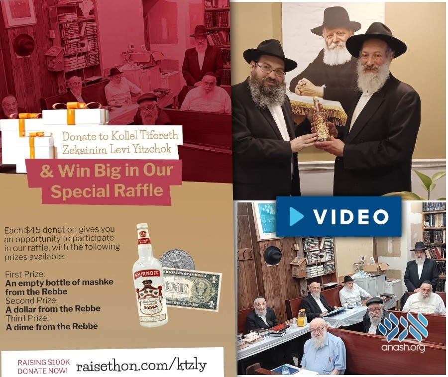45 years ago, the Rebbe personally established ‘Kolel Tifferes Zekainim Levi Yitzchok’ to engage seniors with Torah study. Donate $45 and enter a raffle for a chance to win a mashke bottle from the Rebbe, a dollar and a dime.