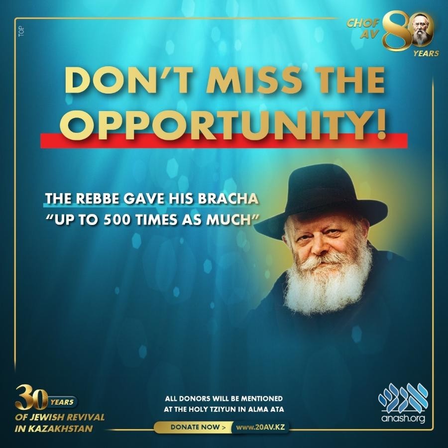 The appeal for Reb Levi Yitzchok’s yahrzeit is a chance to receive brachos in abundance, while strengthening the spread of Yiddishkeit in the entire Kazakhstan.
