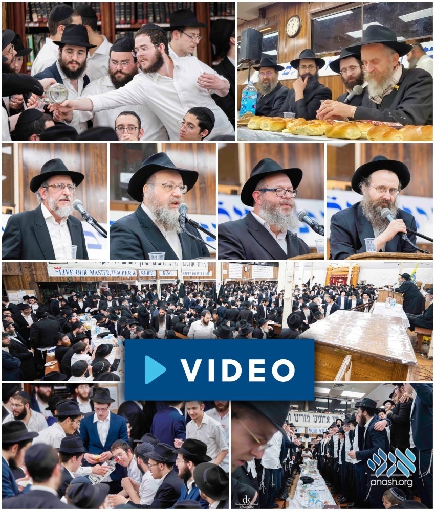 The farbrengen was addressed by Rabbi Yosef Yeshaya Braun member of Crown Heights Beis Din, Rabbi Michoel Golomb, mashpia in 770, Rabbi Yisroel Noach Vogel, and Rabbi Nissim Lagziel. Rabbi Yossi Paltiel taught the Rebbe’s new kapitel Tehillim. The MC was Rabbi Yankel Chazan.
