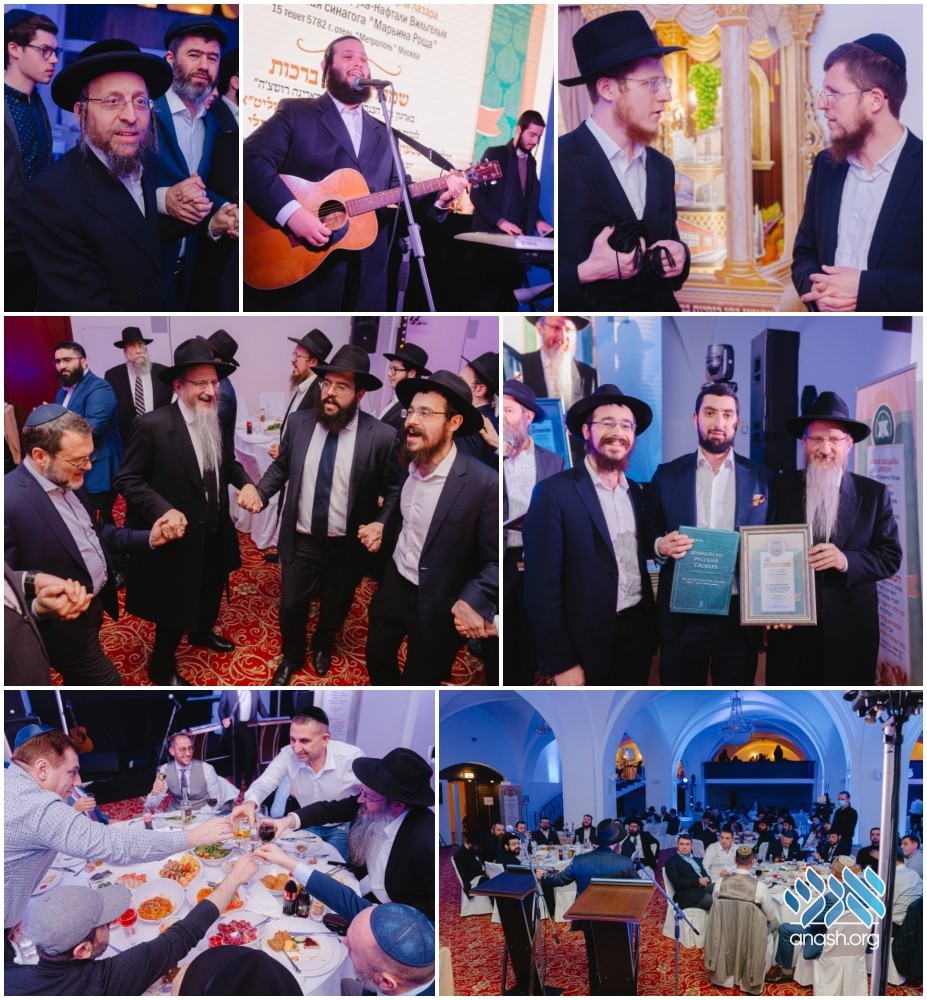 The celebration was held on Sunday night, the 15th of Teves, at the historical Metropol Hotel near Moscow’s Red Square. The annual tribute for friends and supporters of the Marina Roscha Shul took on a special meaning this year, marking 35 years since Rabbi Lazar was sent on shlichus to Moscow. In the decades since, he turned the small wooden shack that was Marina Roscha into a large impressive building full of Torah, Tefilla and Chessed, a beacon of light for all of Russian Jewry.