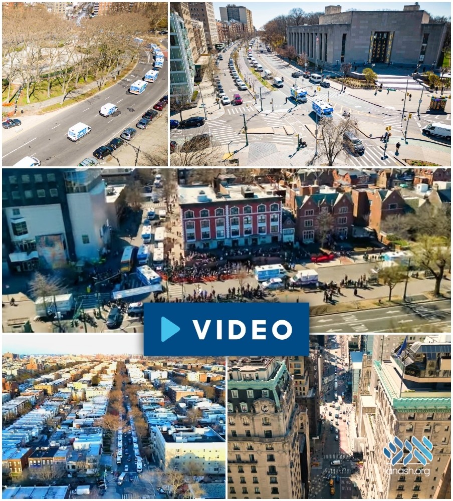 From 770, we’re marching out: Anash.org drone photographers captured magnificent footage of 73 Mitzvah Tanks parading from Brooklyn to Manhattan during the Mitzvah Tank parade in honor of the Rebbe’s 121st birthday.