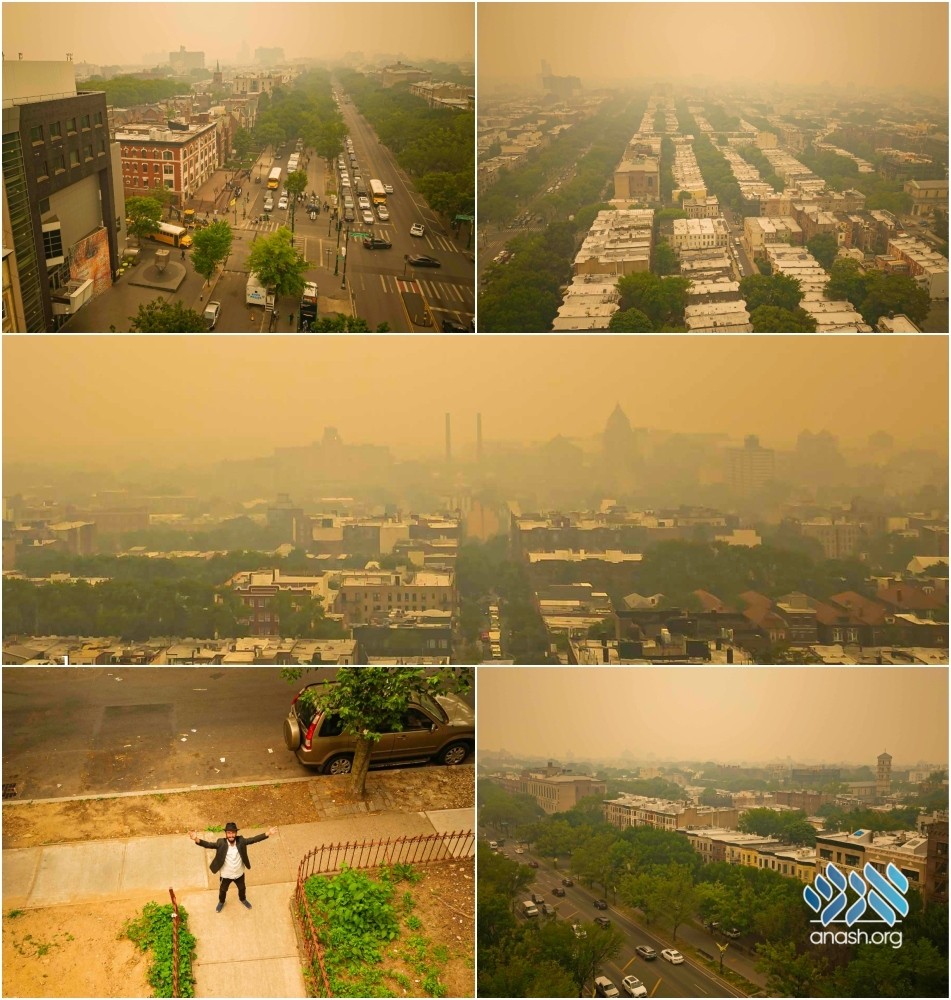 Anash.org photographer David Katash captured astonishing drone photos of New York City covered in an orange haze, due to the ongoing Canadian wildfires.